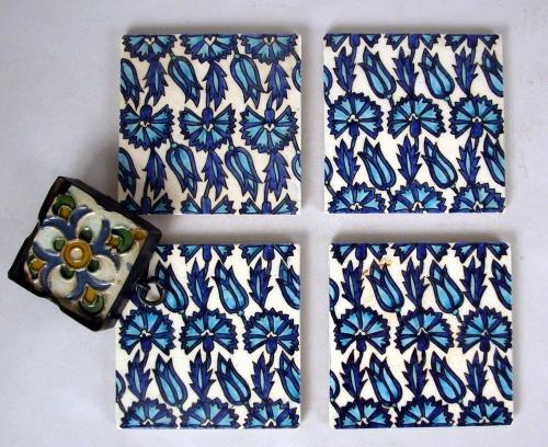 FIVE ARTS AND CRAFTS STYLE POLYCHROME-DECORATED TILES; Losses