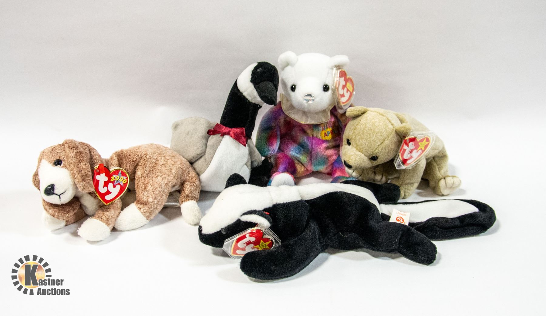 FIVE BEANIE BABIES WITH TAGS, 4 IN TAG
