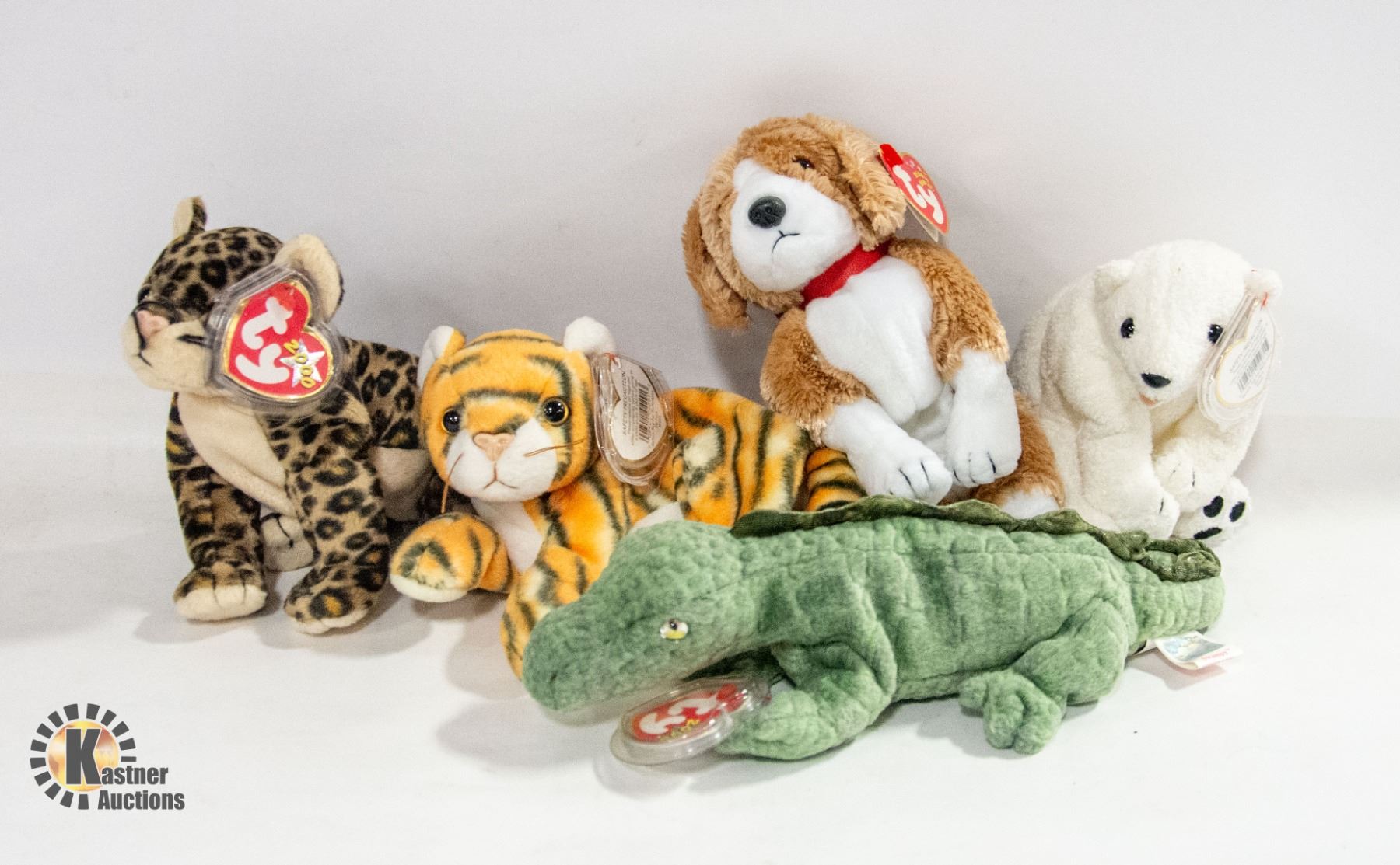 FIVE BEANIE BABIES WITH TAGS, 4 IN TAG