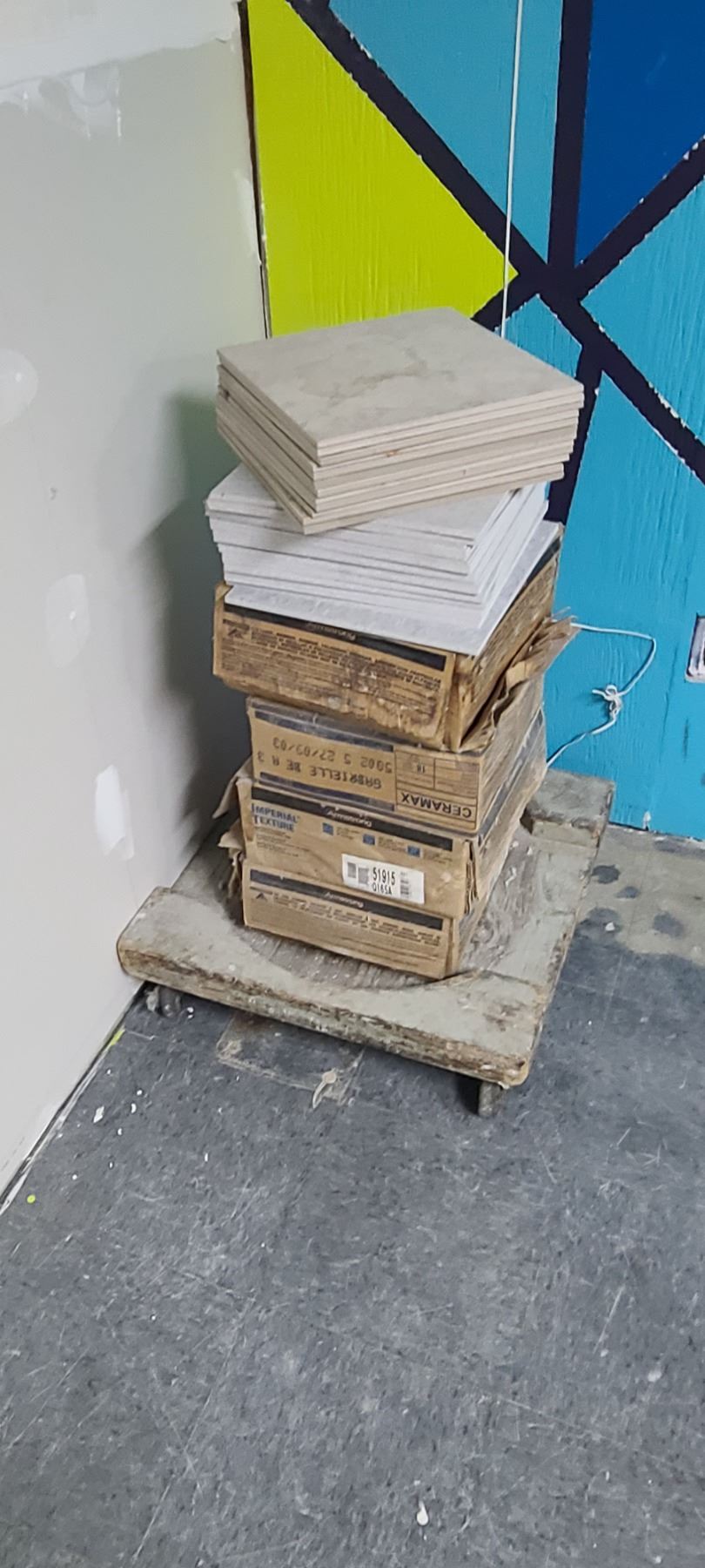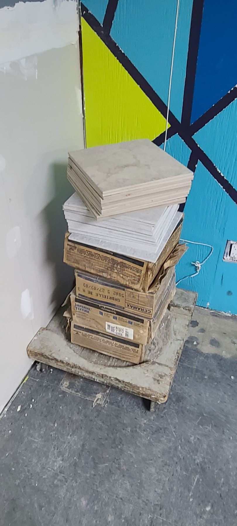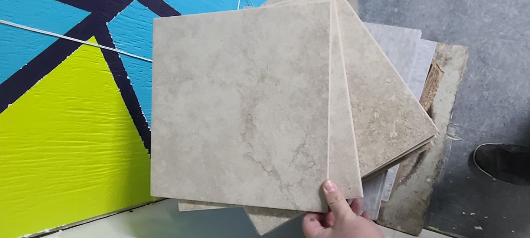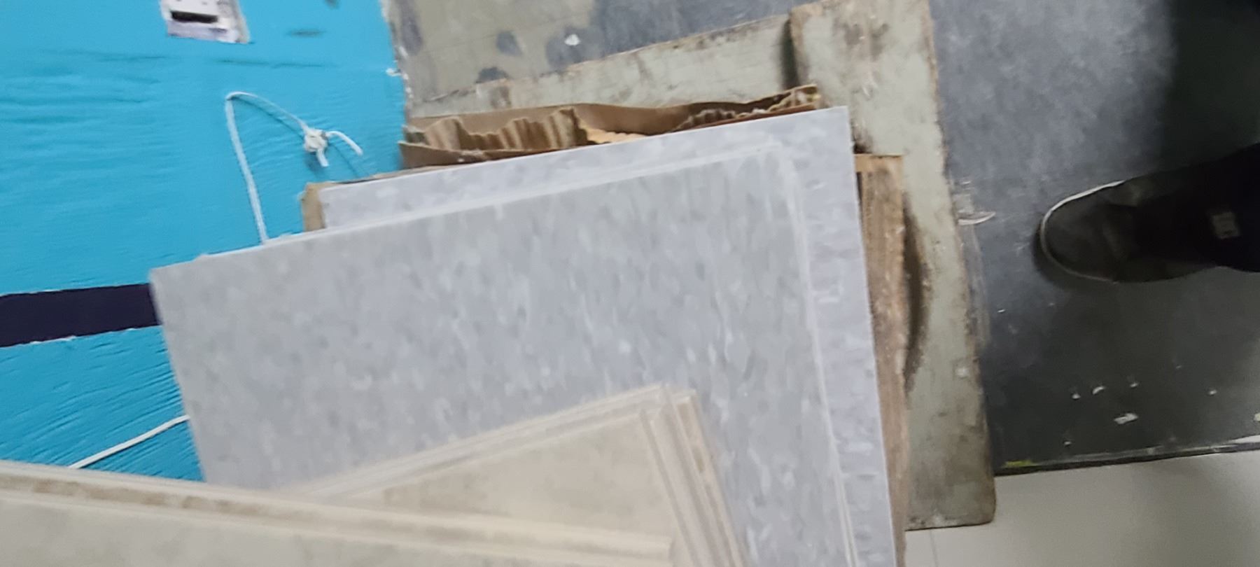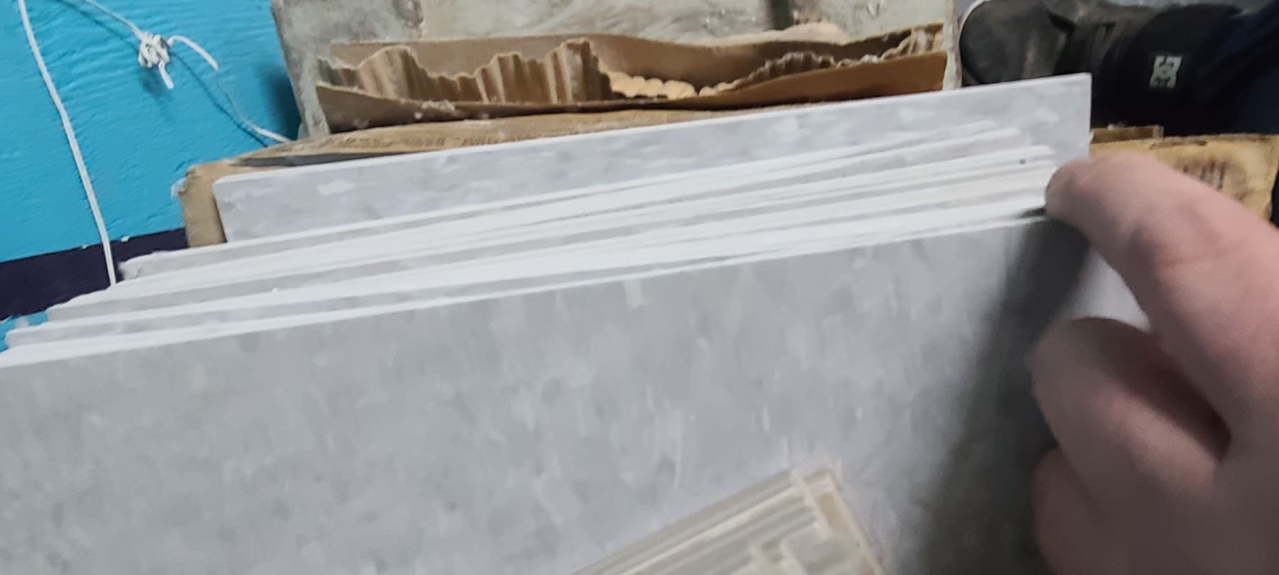 FIVE BOXES OF LAMINATE TILE - GREY AND LOT OF TILE