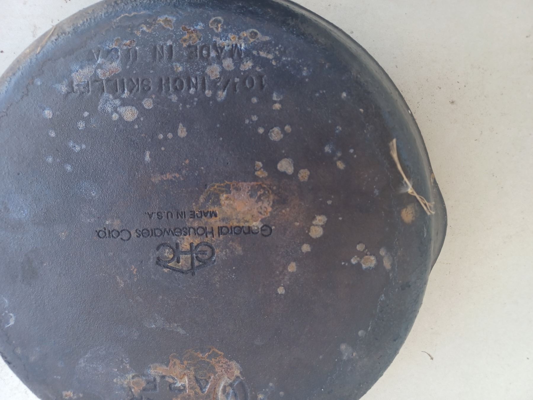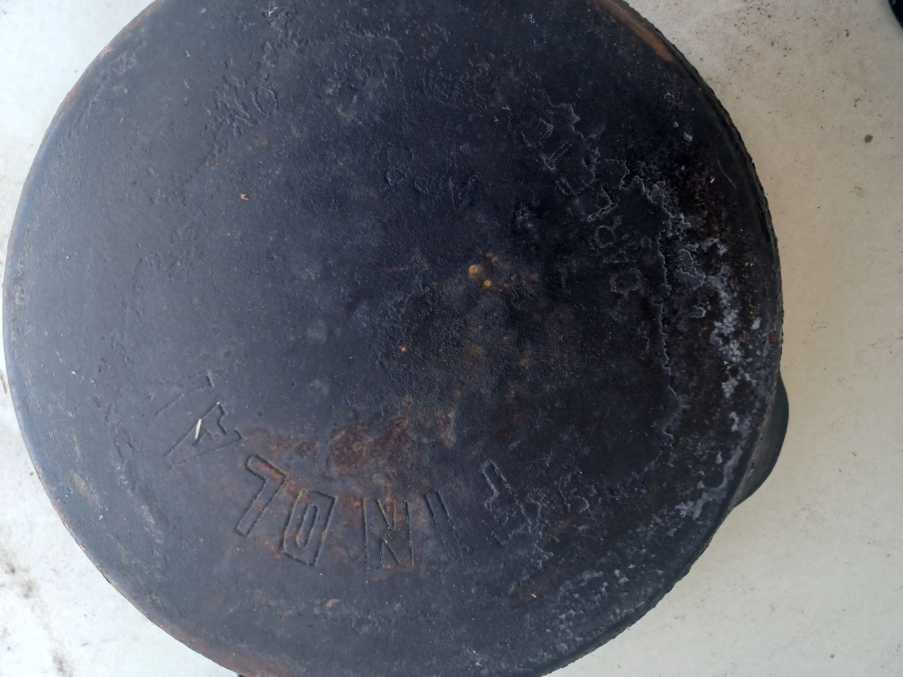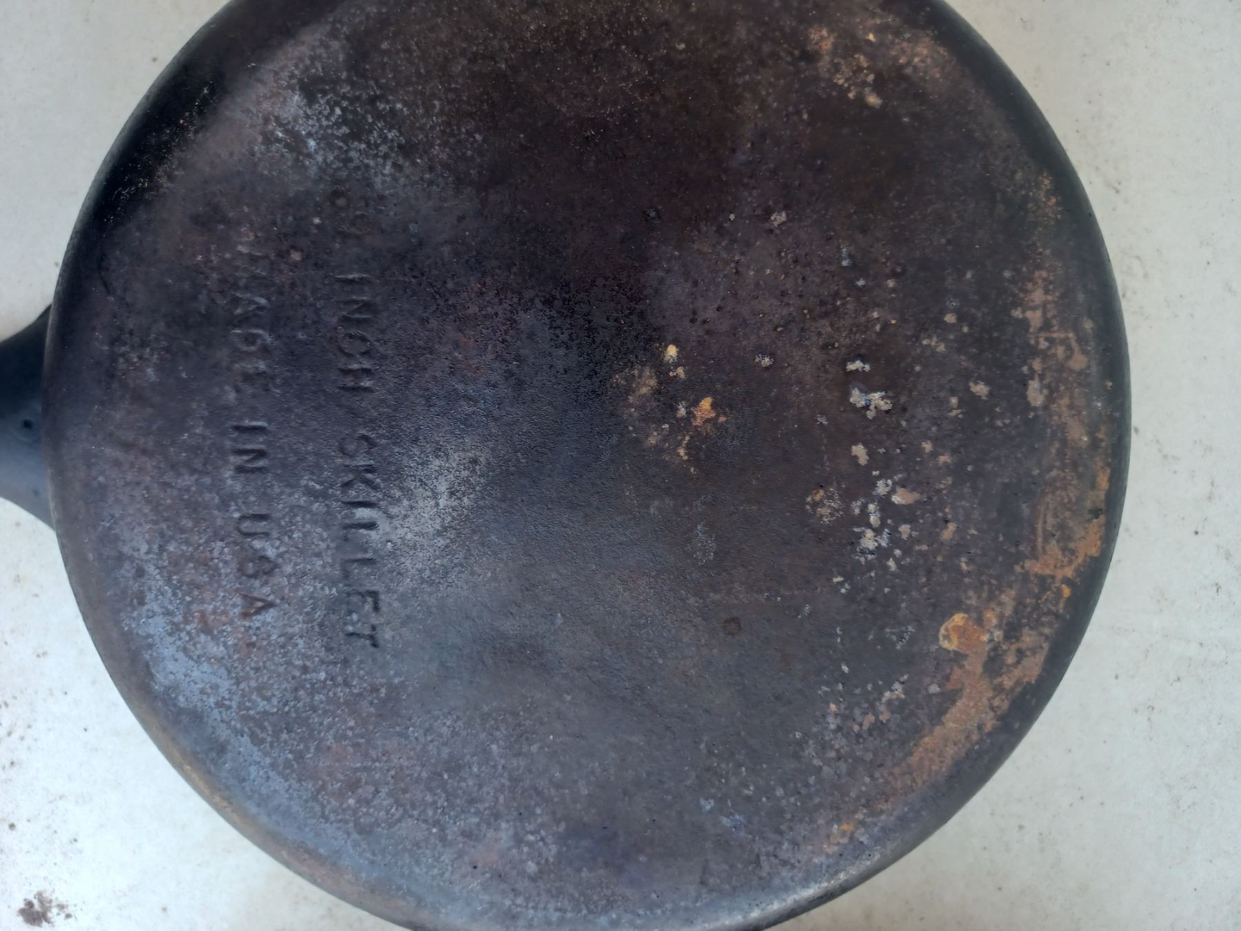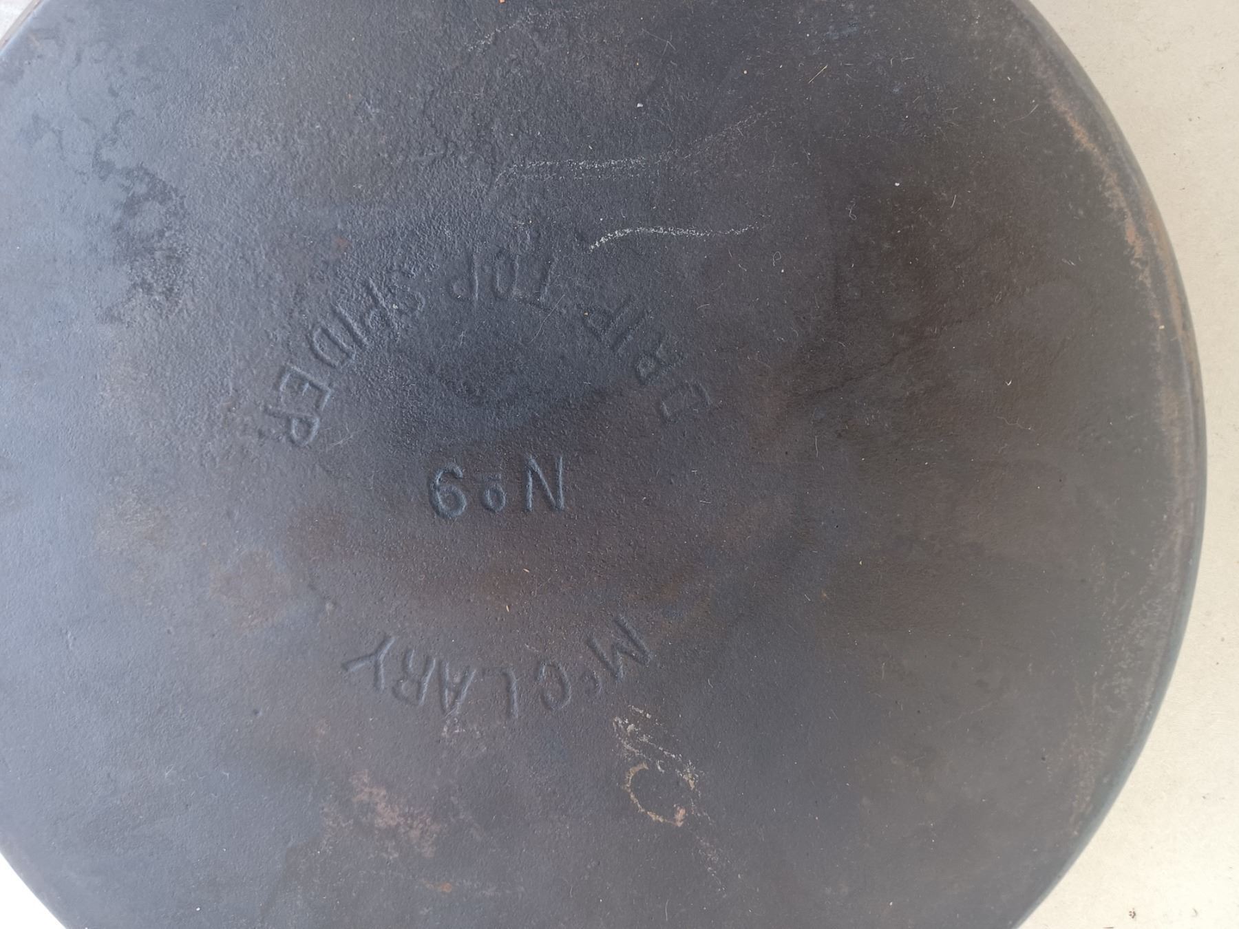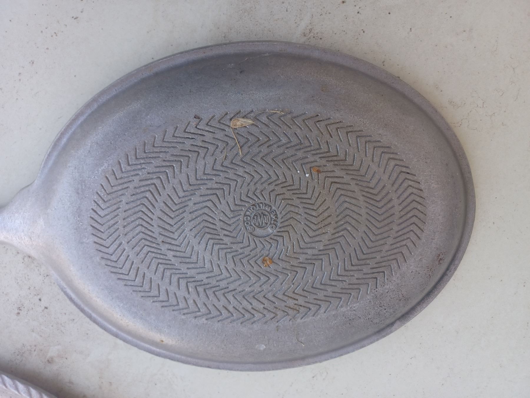 FIVE CAST IRON PANS, TWO CAST ALUMINIUM PANS,