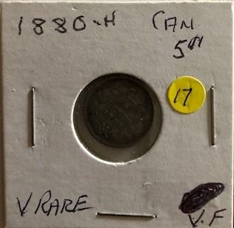 FIVE CENT COIN (CANADA) *1880H, SMALL SILVER*