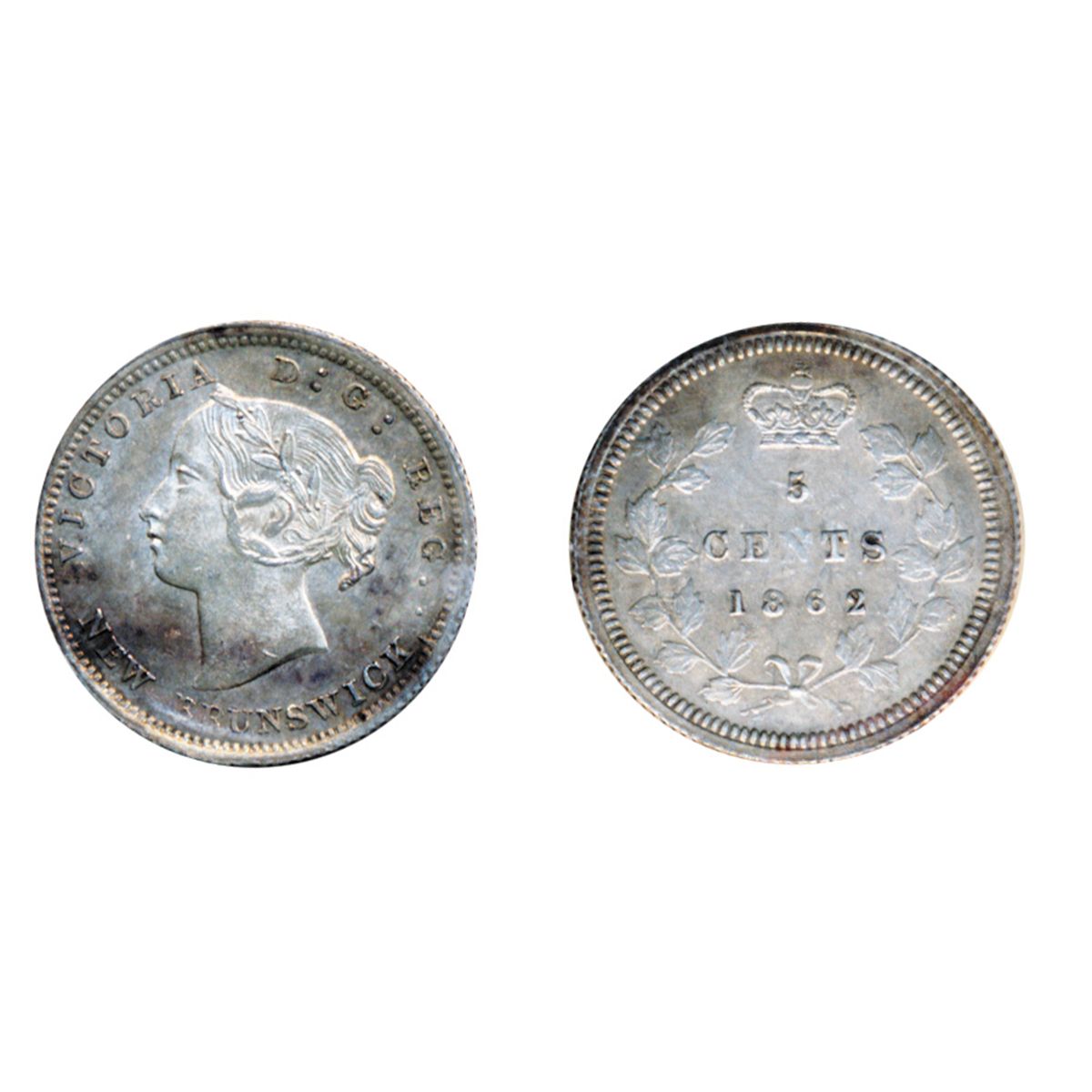 FIVE CENTS. 1862. Small ‘6’ variety. ICCS Mint State-64. Light to medium heavy, multi-hued toning.