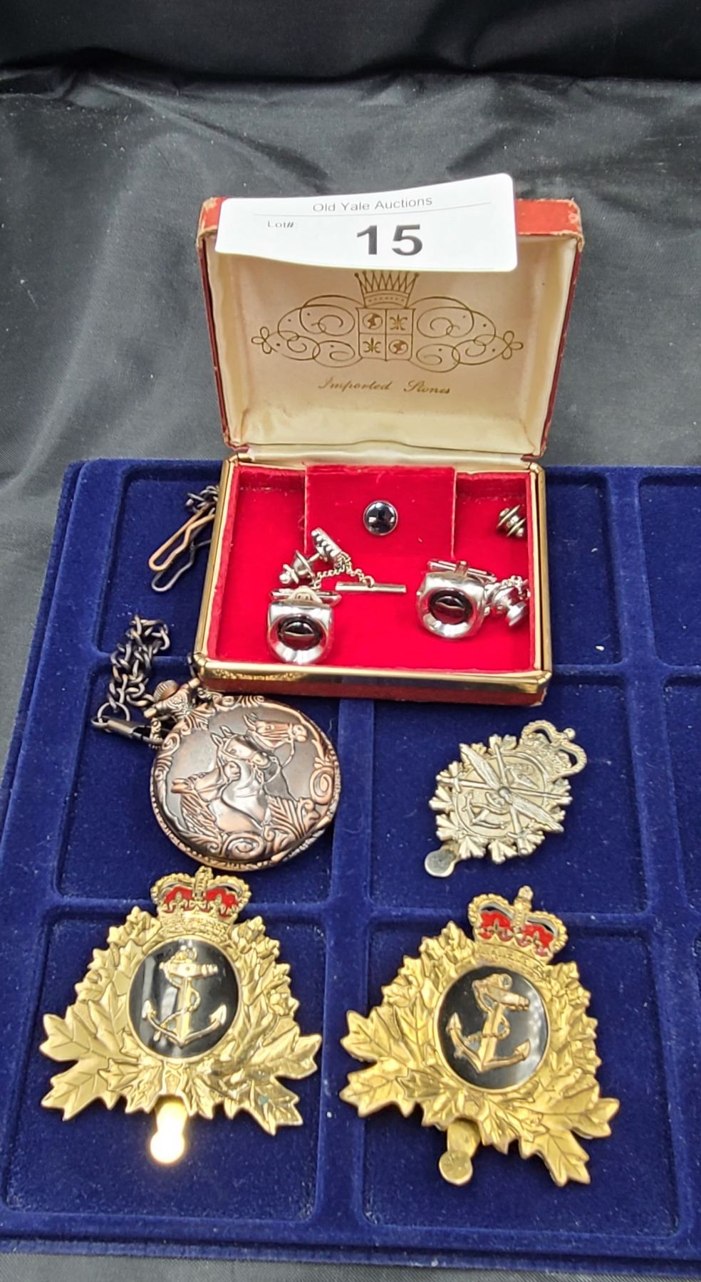 NAVAL BADGES, CUFFLINKS, QUARTZ POCKET WATCH
