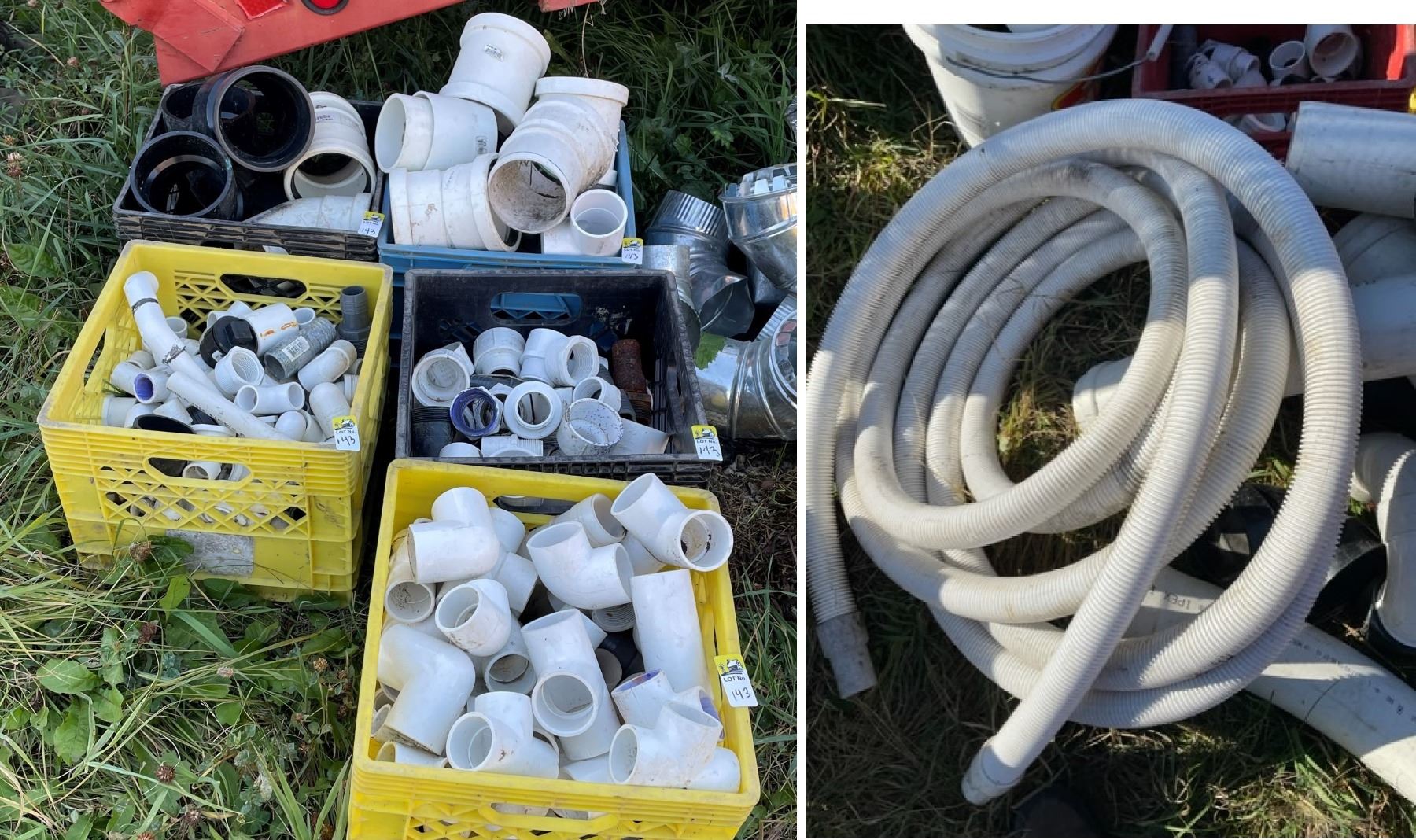 FIVE Crates of Plumbing Connections and Hose
