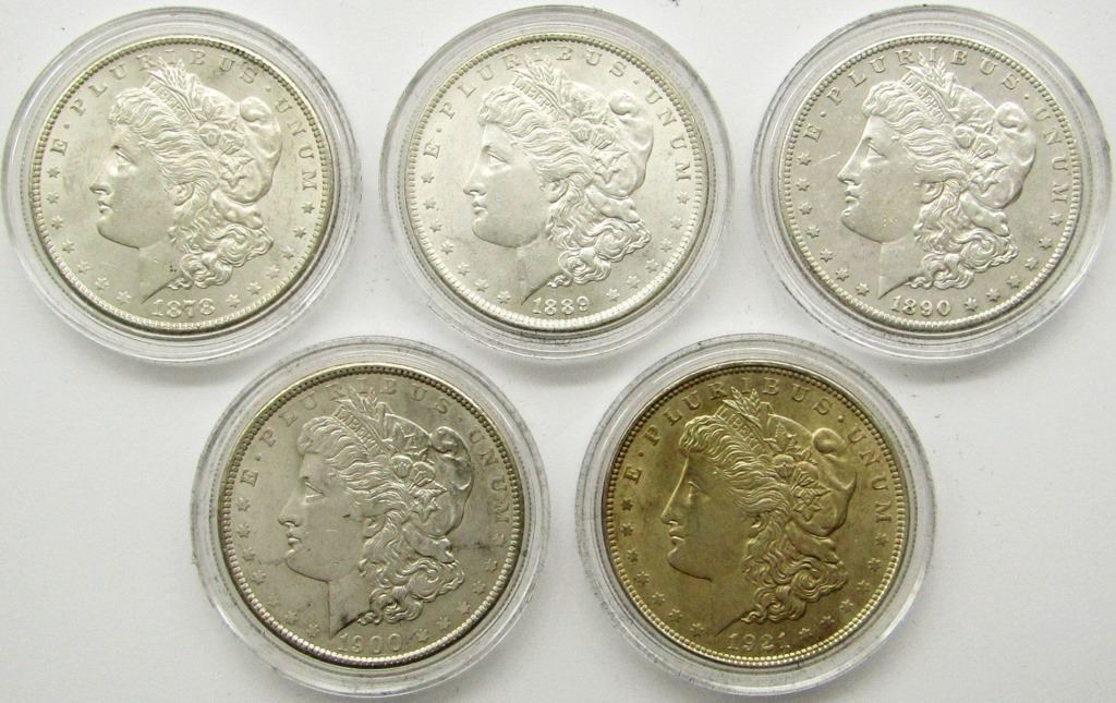 IN WOOD CASE- 1878-S, 1889, 1890-S, 1900, 1921