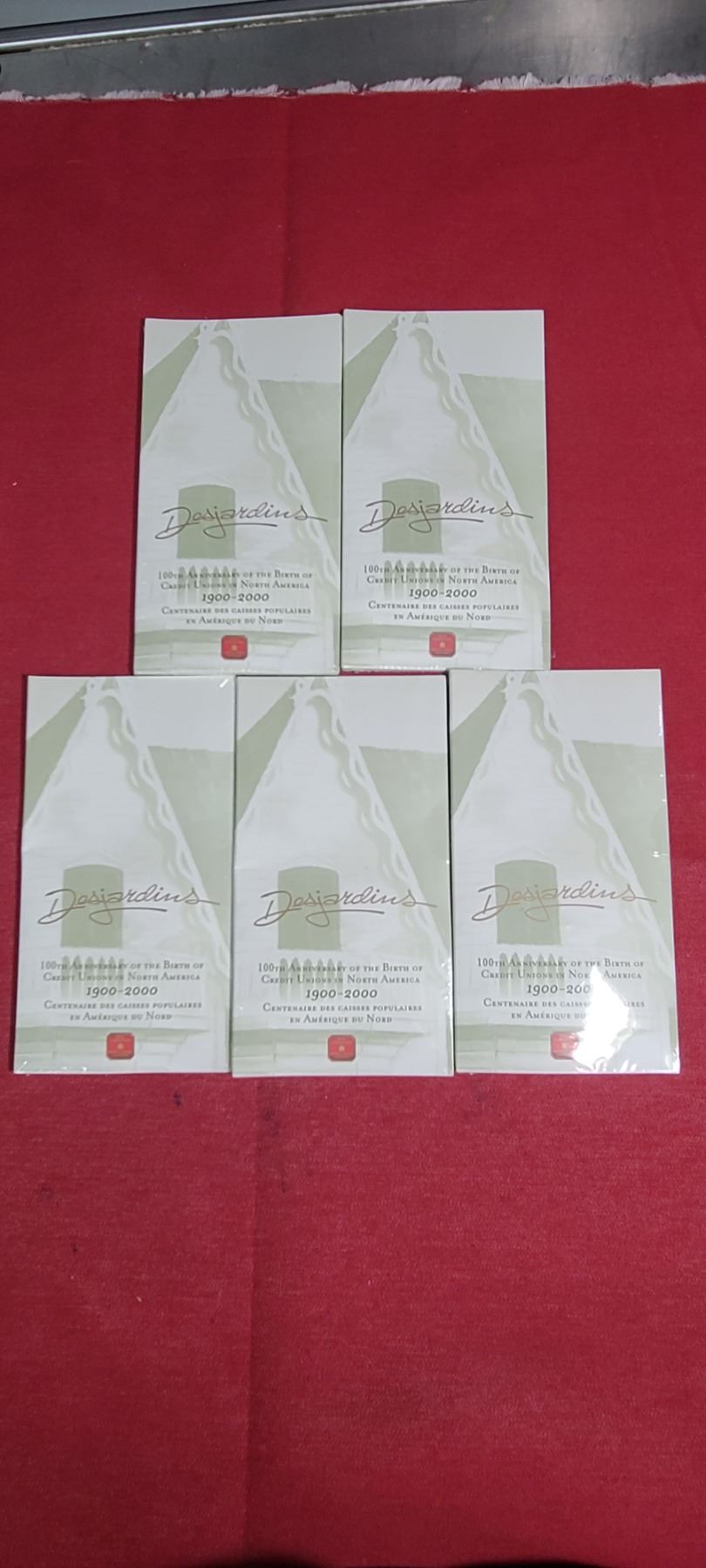 FIVE DESJARDINS 100TH ANNIVERARY OF THE BIRTH OF CREDIT UNIONS IN NORTH AMERICA 1900-2000 10CENT STERLING SILVER