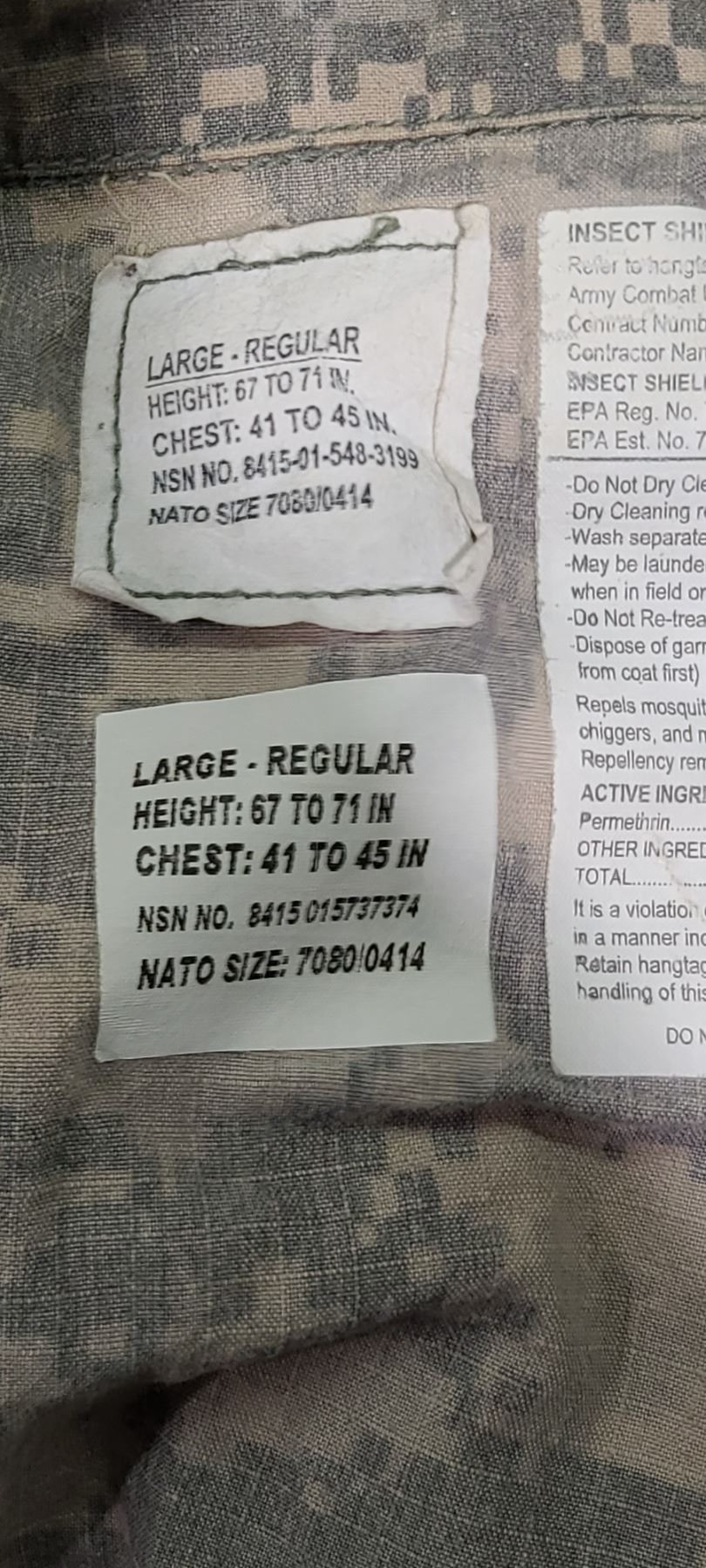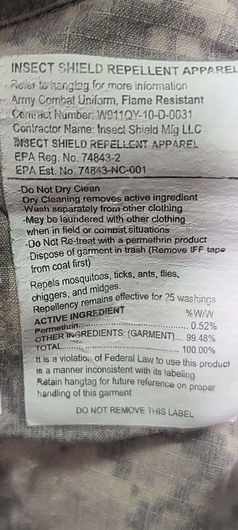 FIVE DIGITAL ARMY COMBAT CAMOUFLAGE INSECT REPELLENT APPAREL LARGE-REG SHIRTS