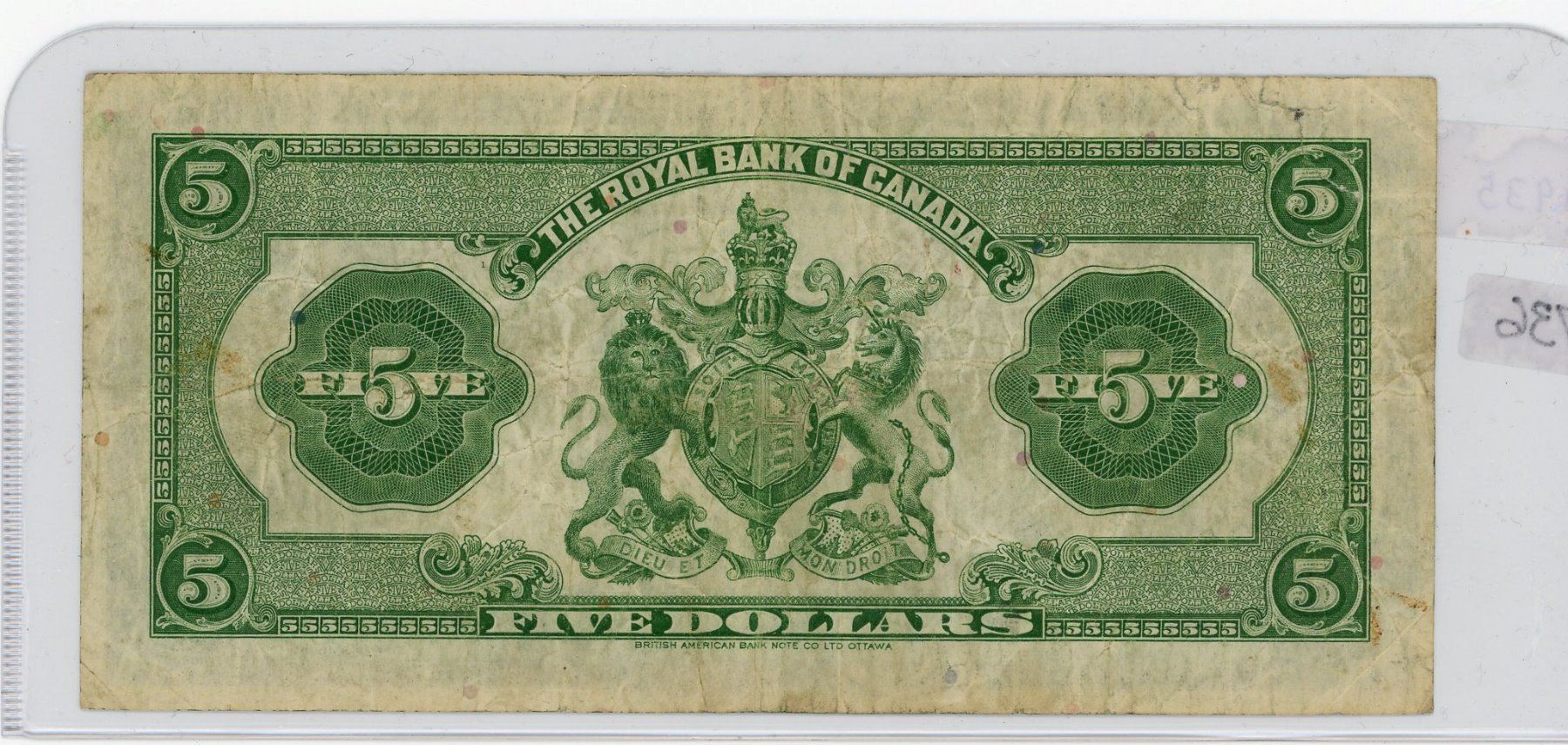 FIVE DOLLAR BILL (ROYAL BANK OF CANADA) *1935*
