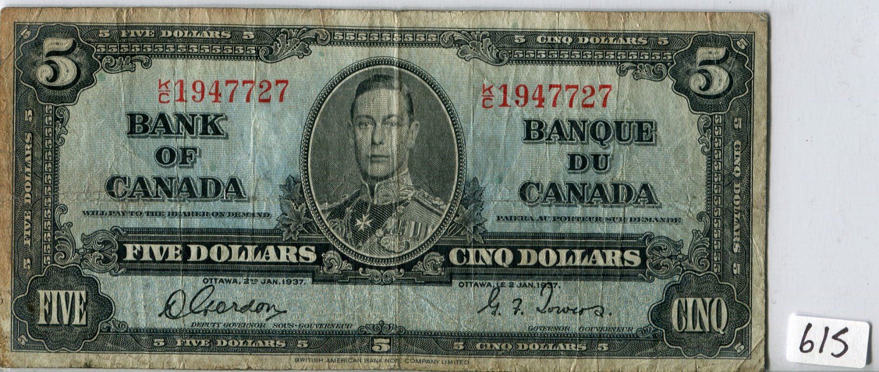FIVE DOLLAR NOTE (BANK OF CANADA) *1937*