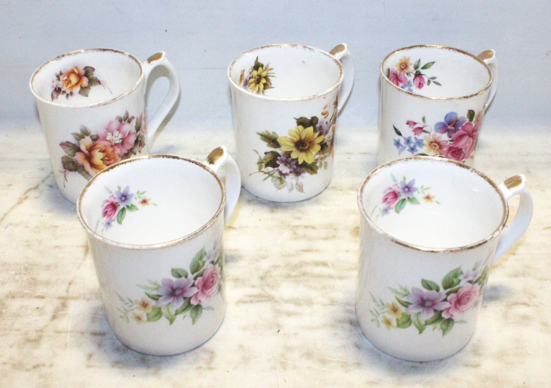 FIVE ELIZABETHAN FINE BONE CHINA CUPS