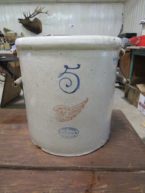 FIVE GALLON RED WING CROCK