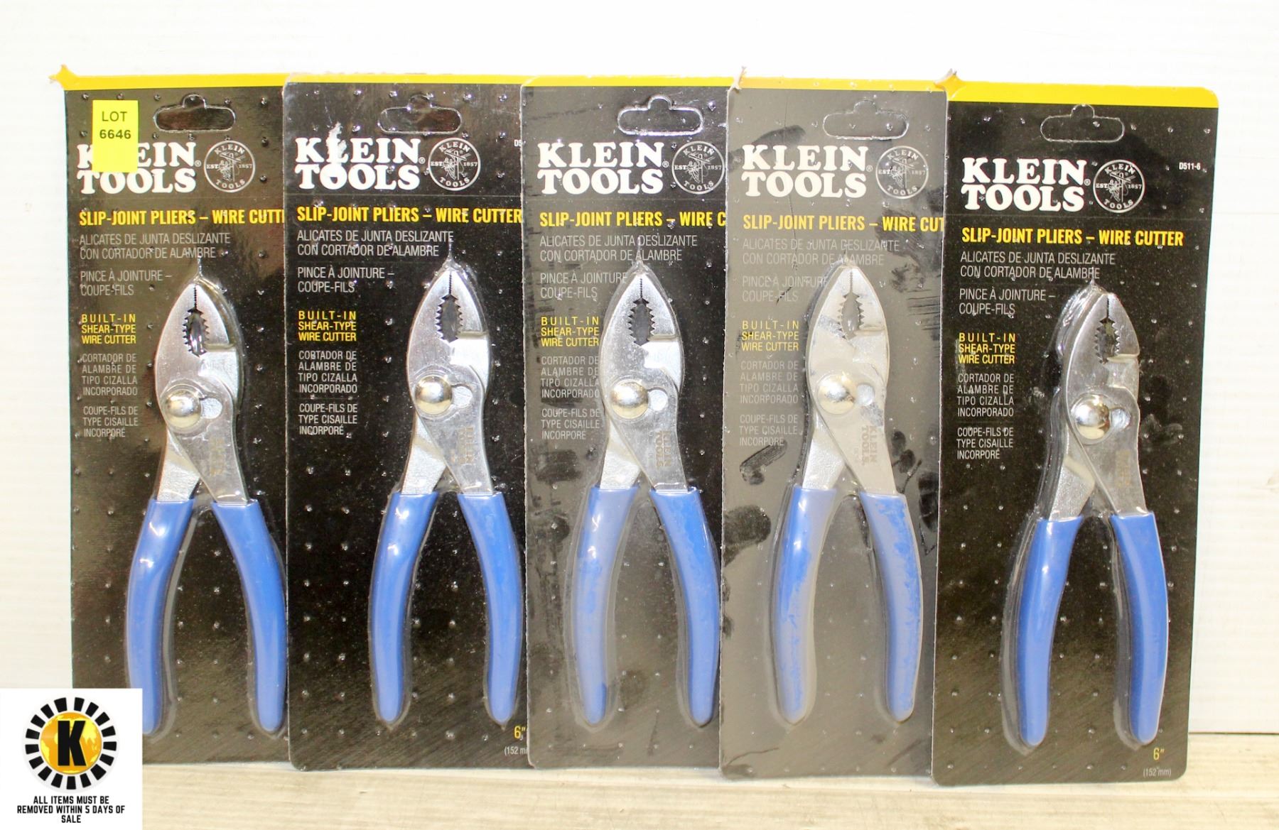 FIVE KLEIN TOOLS SLIP-JOINT PLIERS WIRE CUTTERS