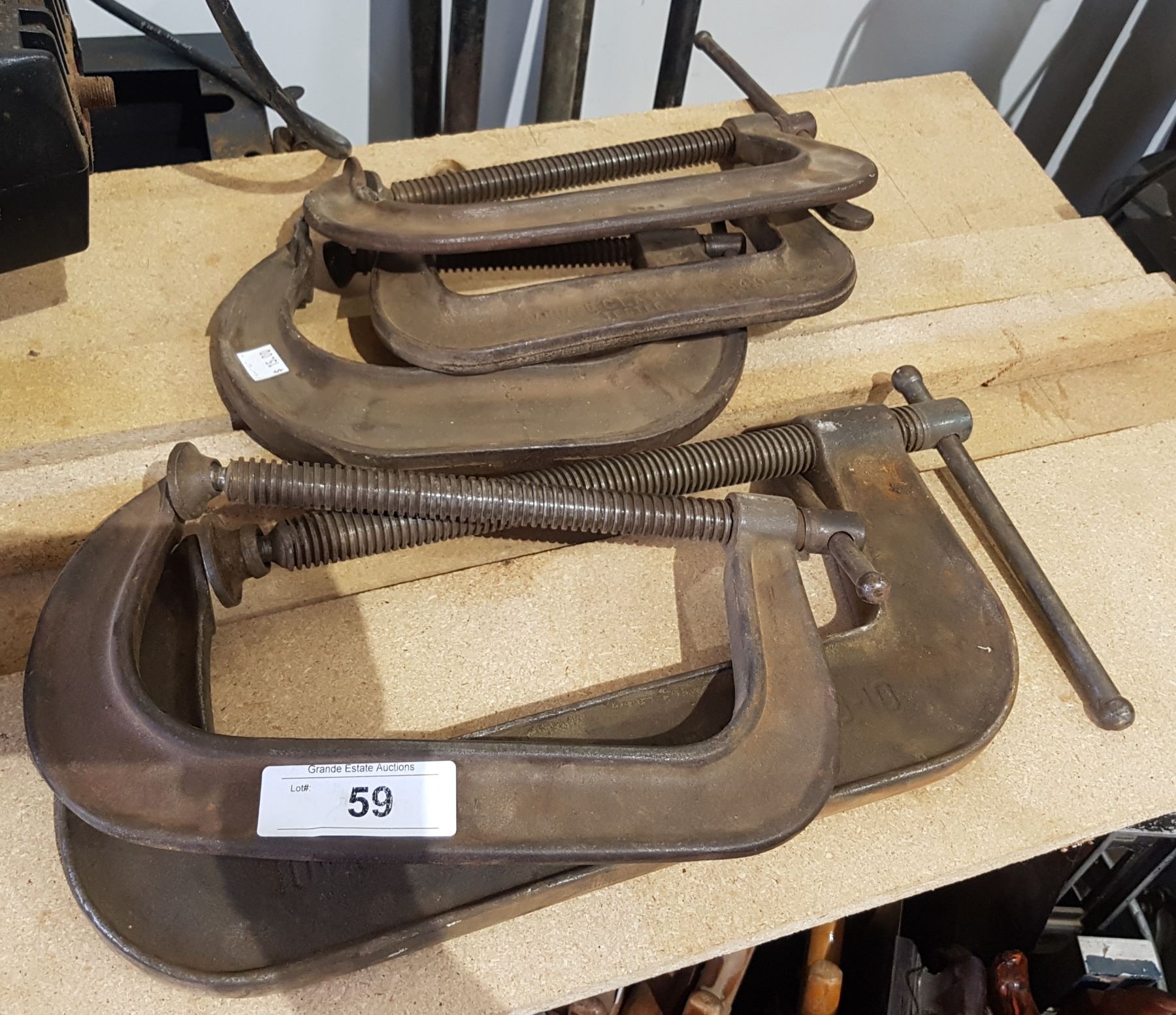 FIVE LARGE ANTIQUE C CLAMPS