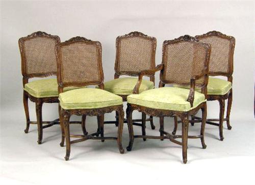 <b>FIVE LOUIS XV-STYLE CARVED DINING CHAIRS</b>