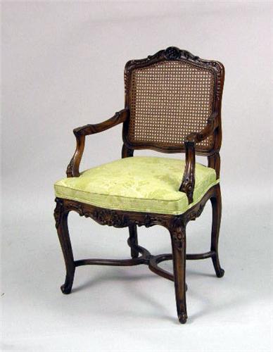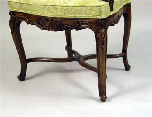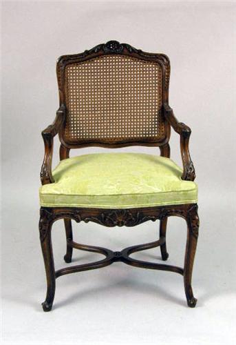 Comprising one arm and four side chairs. 37 1/2"h x 20"w x 19"d Wear to upholstery.