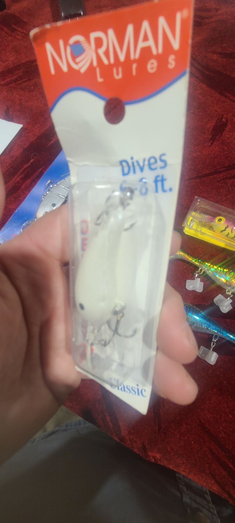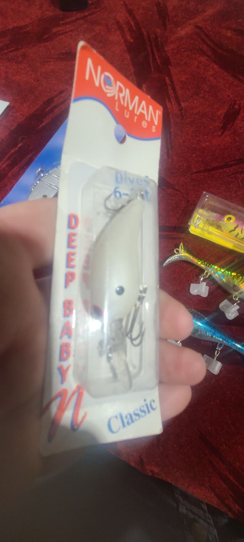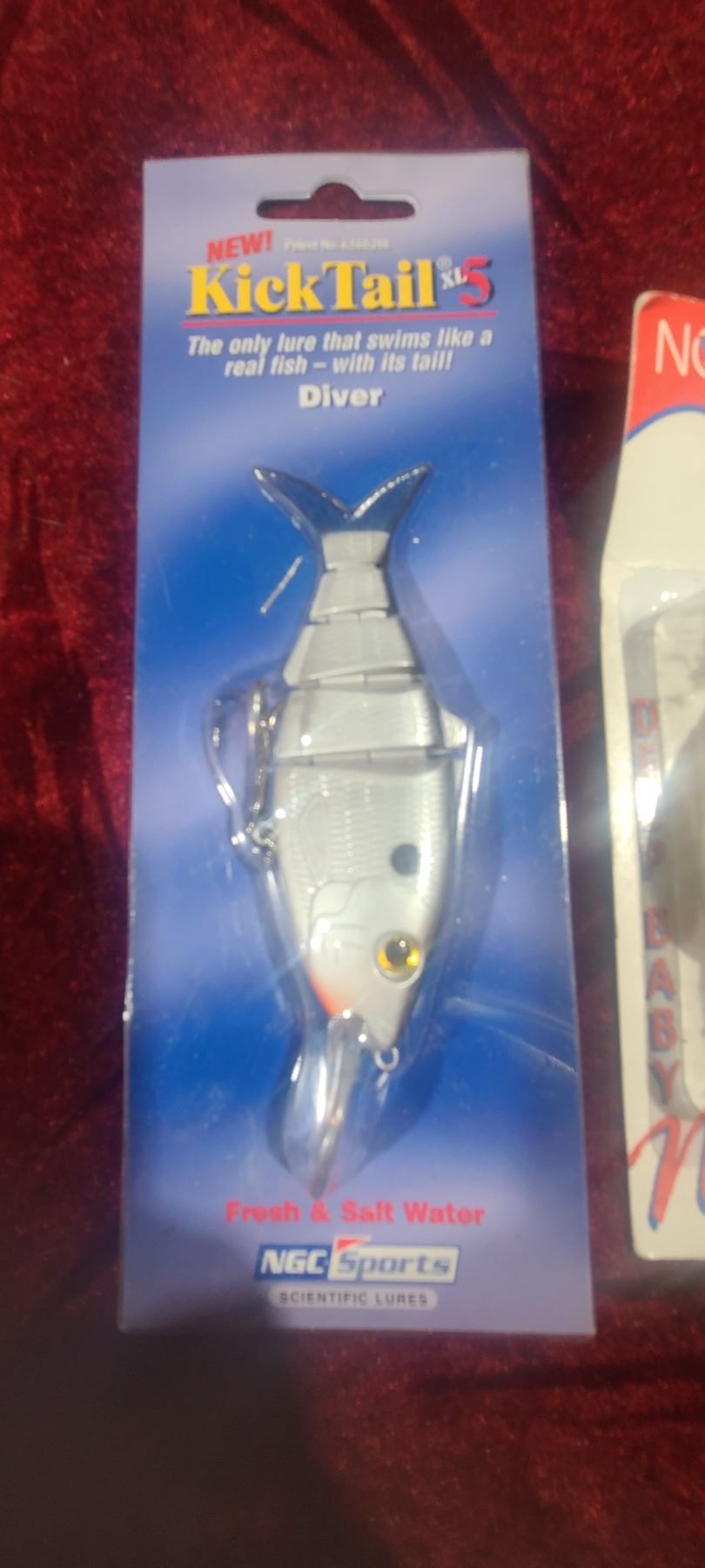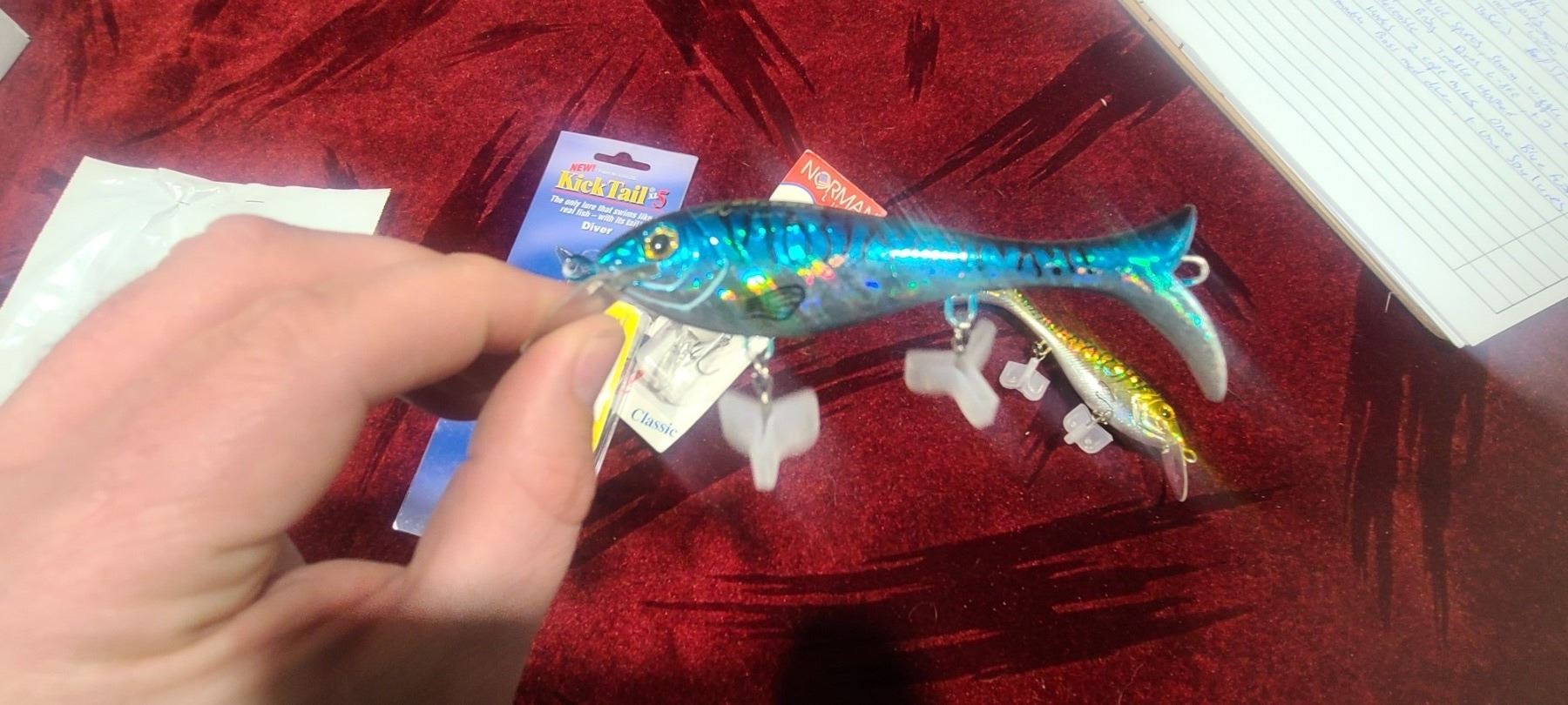 FIVE LURES: KICK TAIL XL5 DIVER BY NGC SPORTS, STORM WIGGLE WART ORIGINAL SERIES, NORMAN LURES, DEEP BABY DIVES 6-8' AND TWO ENLURES