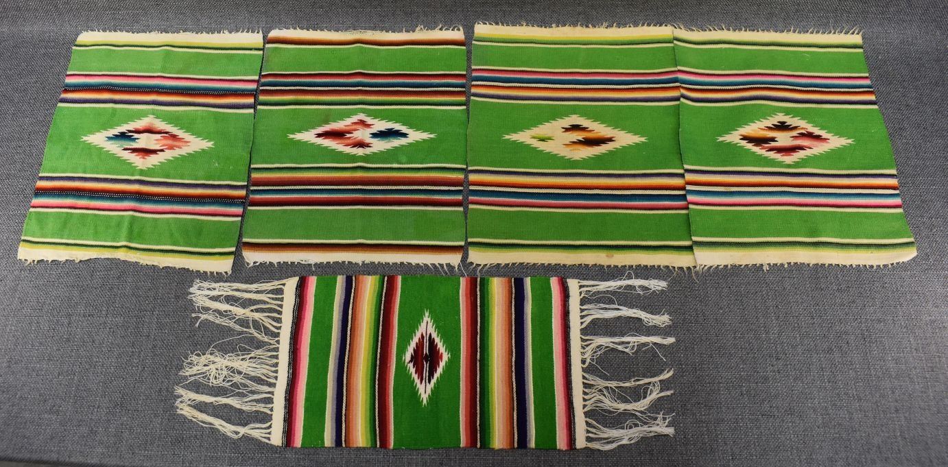 1970's Mexican hand woven with banded and diamond design with fringe largest 10.5" x 8.5"