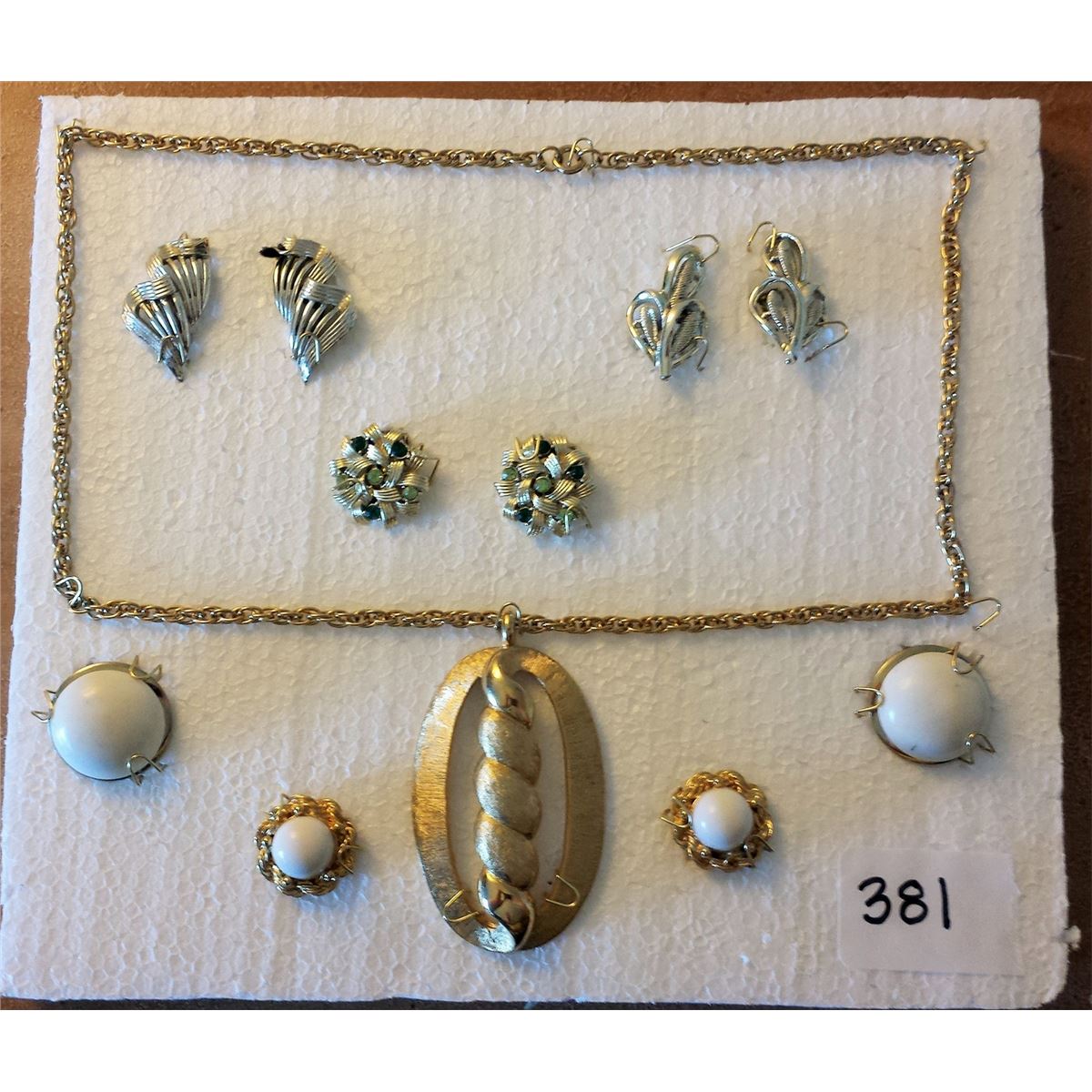 FIVE PAIRS OF VINTAGE CLIP ON CORO EARRINGS AND A CORO MEDALLION NECKLACE