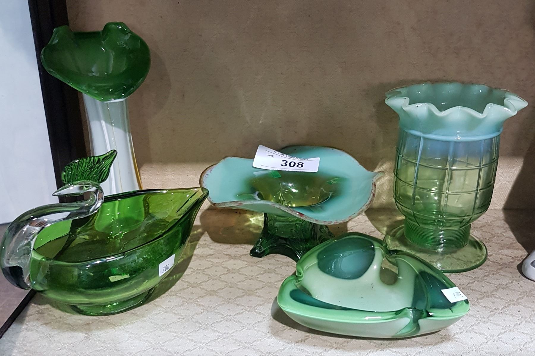 FIVE PCS GREEN ART GLASS