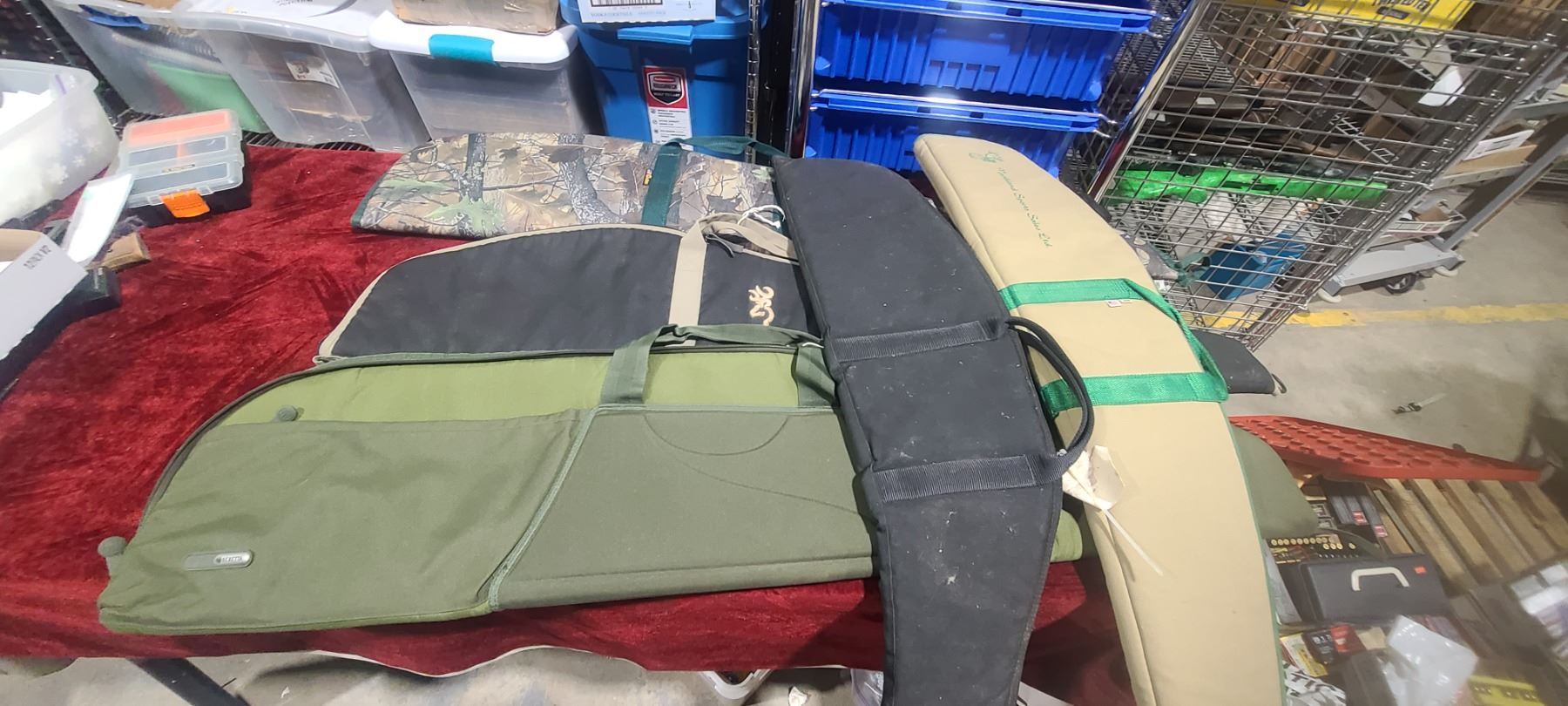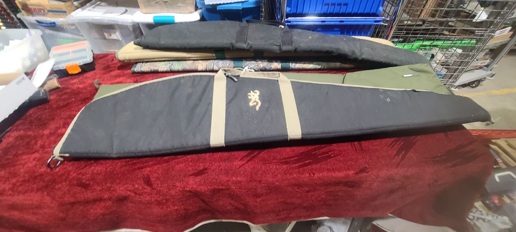 FIVE RIFLE BAGS - ONE IS A BERETTA, BROWNING AND ALLEN