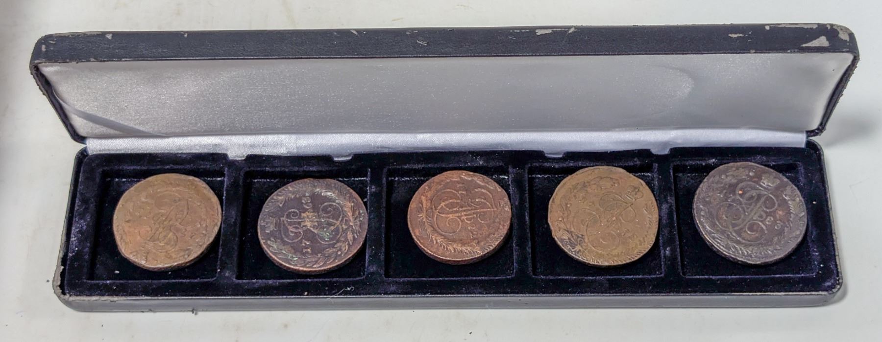 FIVE RUSSIAN CATHERINE THE GREAT 1700s COINS