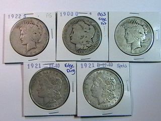 FIVE SILVER DOLLARS 3 MORGAN, 2 PEACE