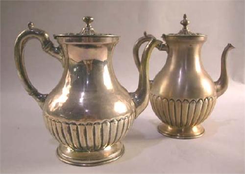 FIVE SIMILAR MEXICAN STERLING GADROONED TEAPOTS; Marked 925, (losses) tallest 8 1/2"h