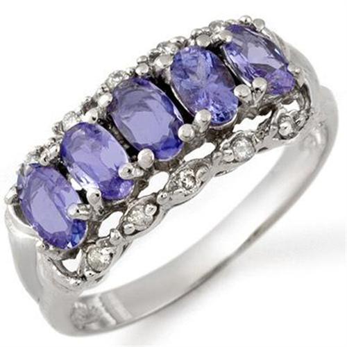 GENUINE 1.80 ctw DIAMOND & TANZANITE LADIES RING IN 10K WHITE GOLD