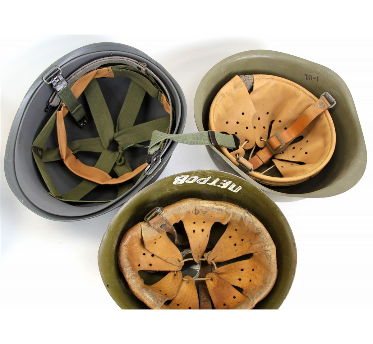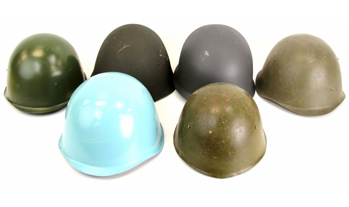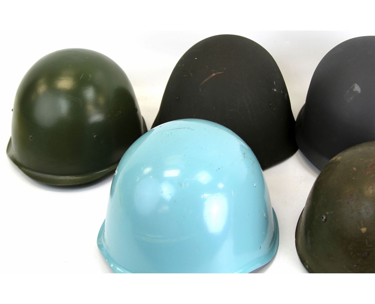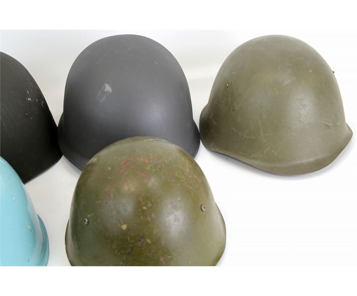 FIVE SURPLUS EUROPEAN MILITARY HELMETS Five surplus European military helmets. Russian, Polish, Bulgarian, Dutch, and two others. Country: Mixed Condition: Excellent