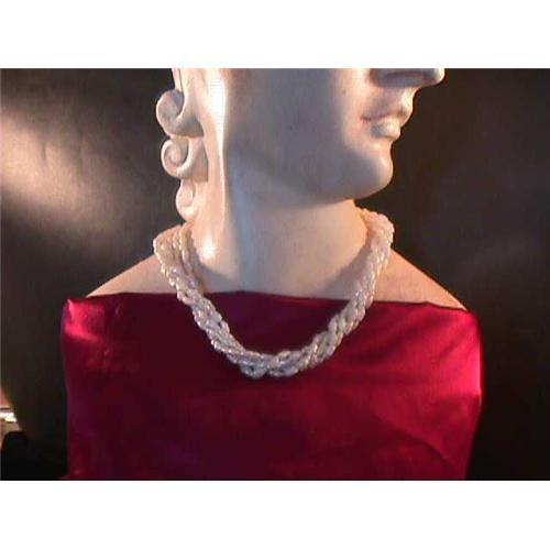 This Necklace is Circa 1950 and it is Very beautiful - and - very versatile. It is a Five stranded necklace of beautifully matched Freshwater Pearls with a 14k Yellow Gold clasp. The necklace is 16 inches in length. I Highly recommend this necklace to you. You will enjoy wearing it many times with many different outfits.