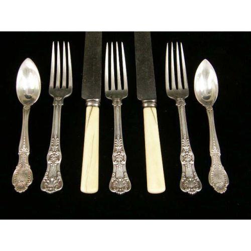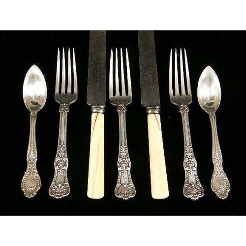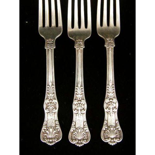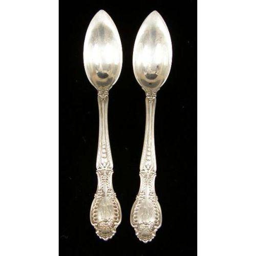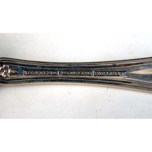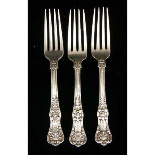 FIVE TIFFANY & CO STERLING SILVER FLATWARE ITEMS<BR><BR>three "English King" pattern luncheon forks, 6-3/4"l, and two "Richelieu" pattern grapefruit spoons, monogrammed, apx. 8 t.o. Together with two Tiffany & Co. bone-handled knives