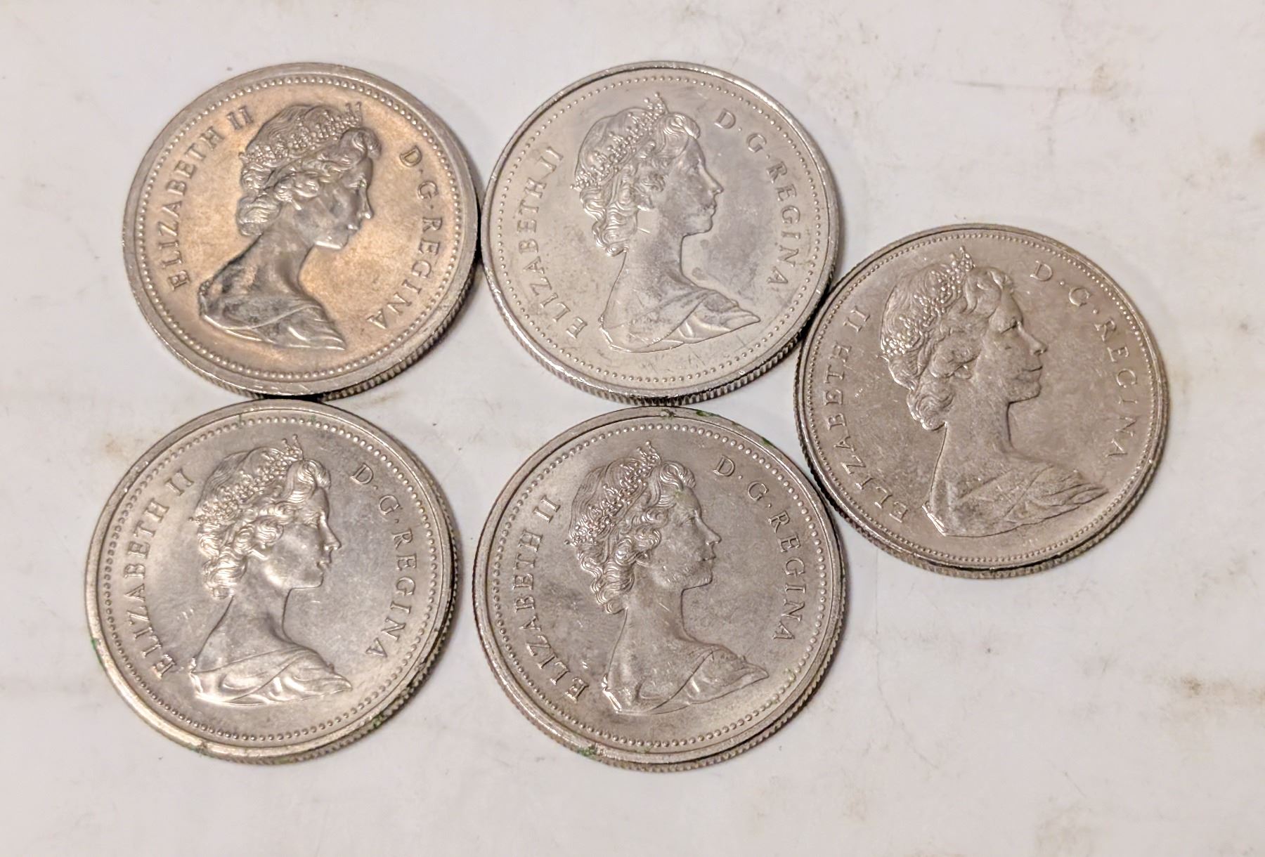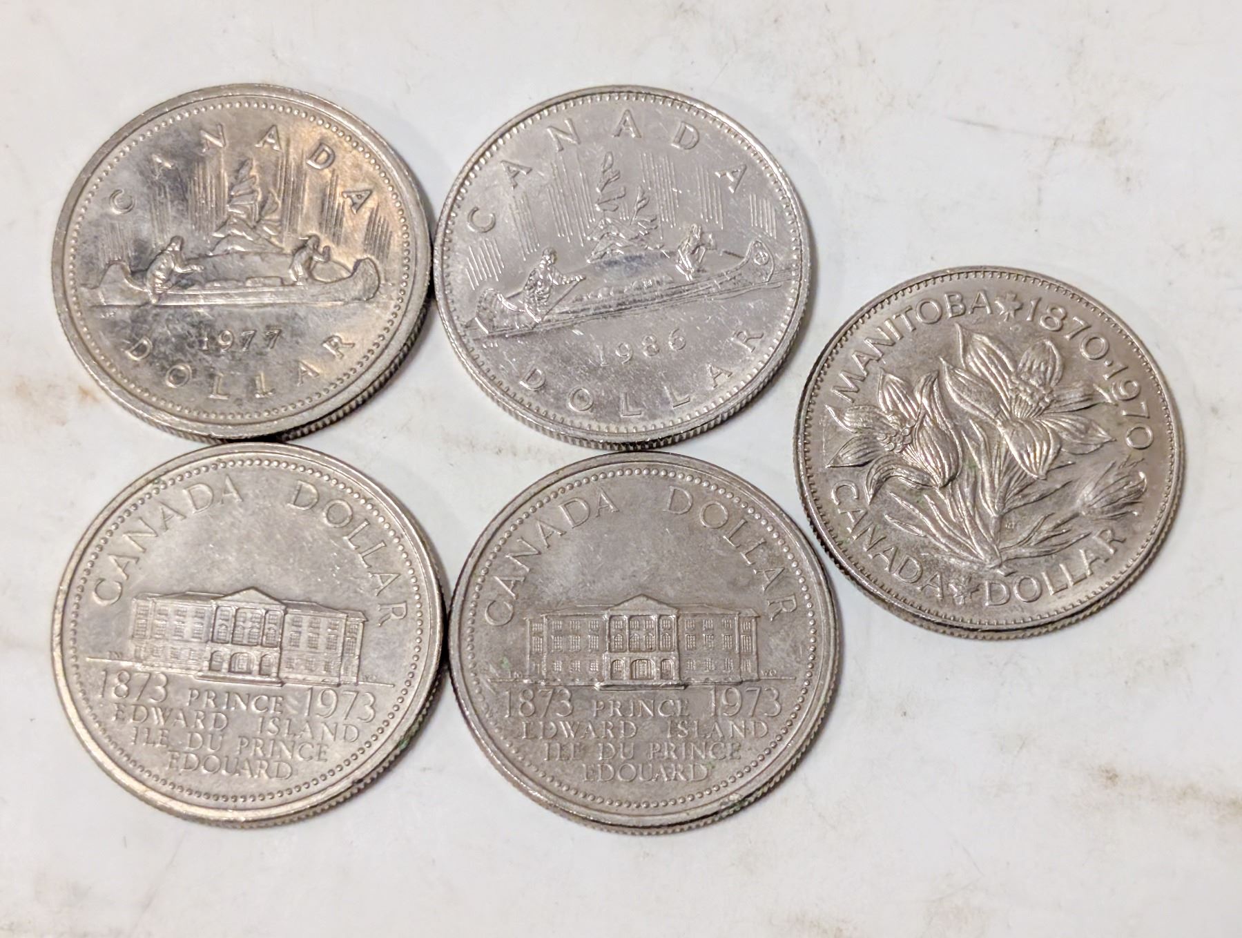 FIVE VINTAGE CANADA DOLLAR COINS