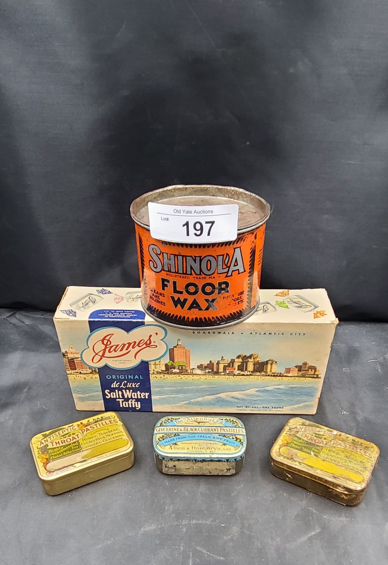 FIVE VINTAGE COLLECTIBLE TINS & BOX