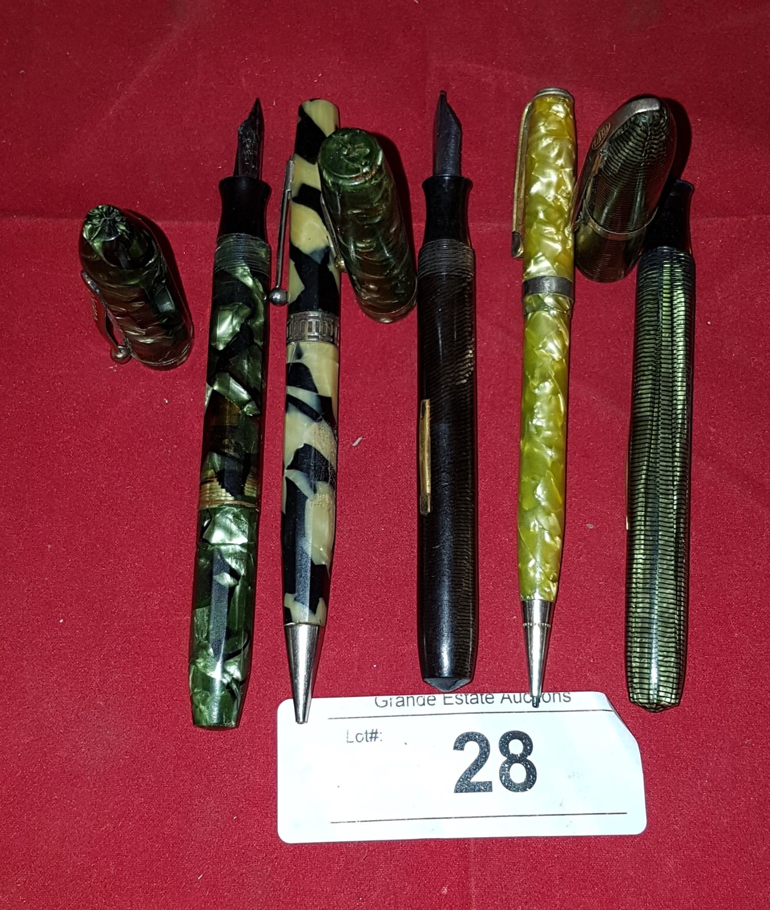 FIVE VINTAGE FOUNTAIN PENS & PENCILS