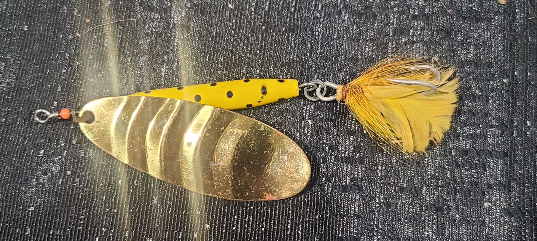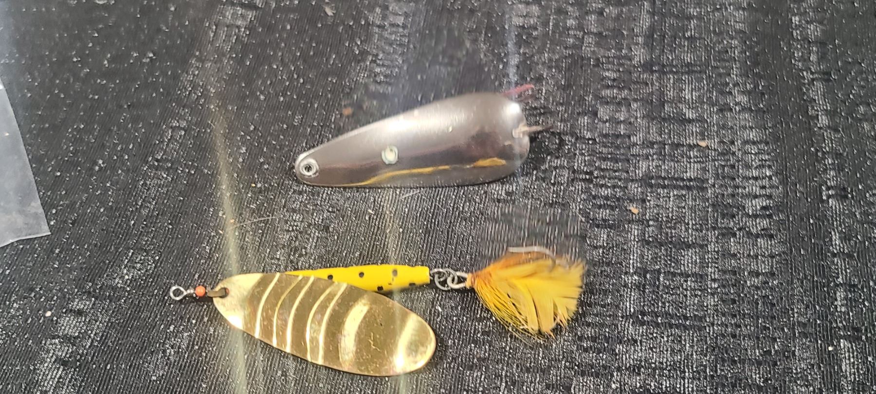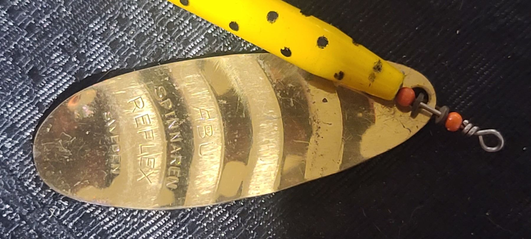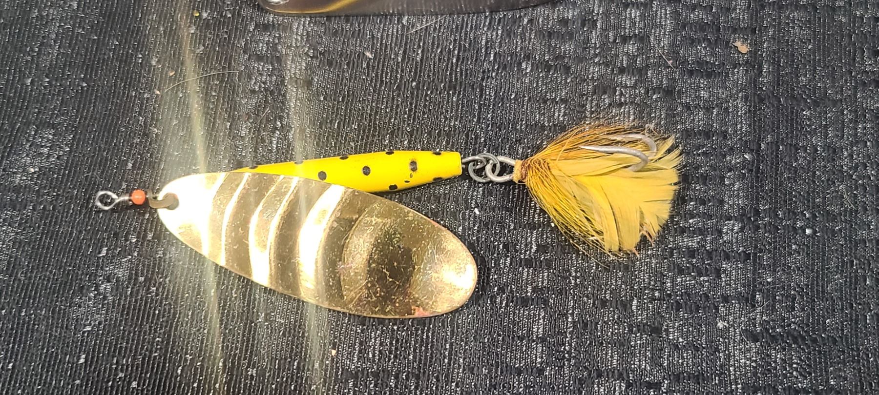 FIVE VINTAGE LARGE SPINAREN SPINNER YELLOW AND SILVER MINNOW-NO NAME