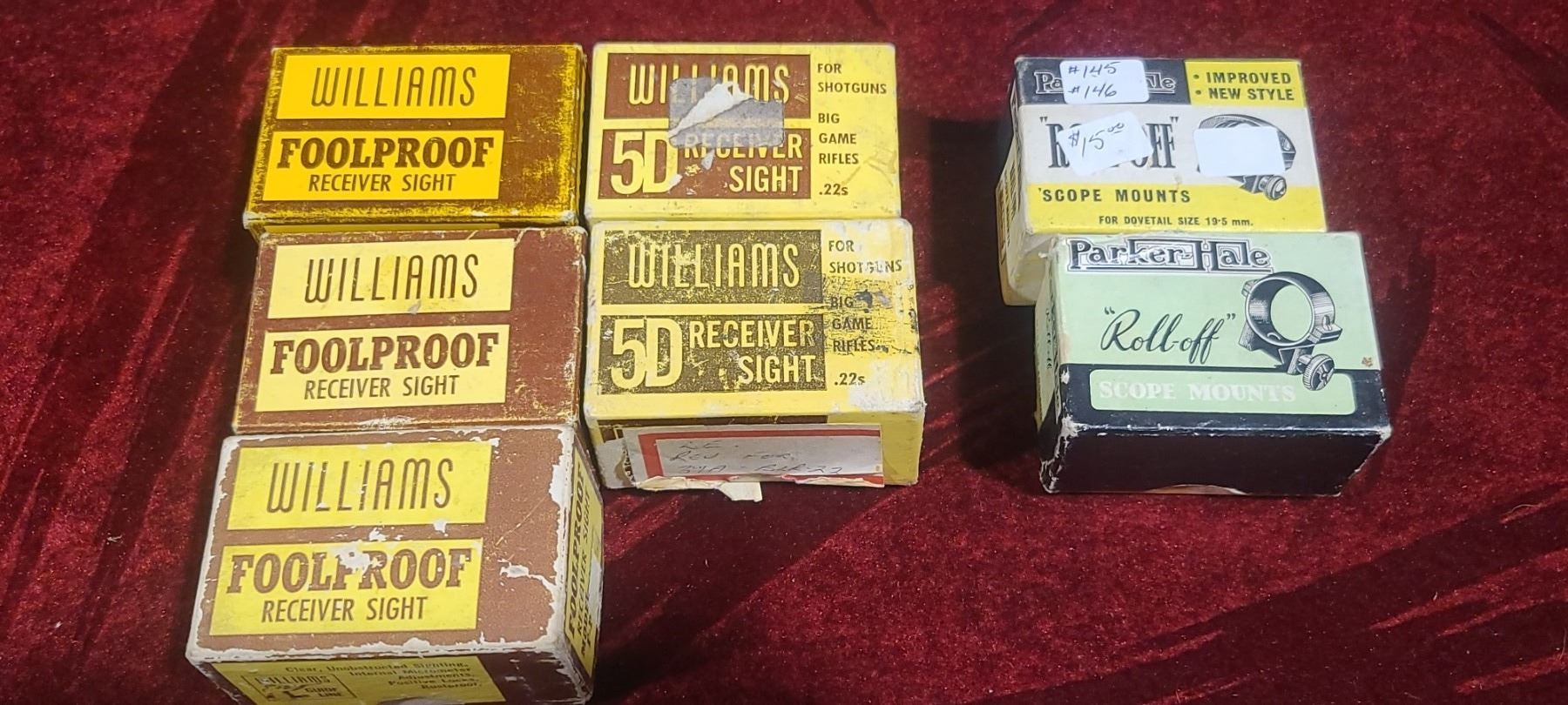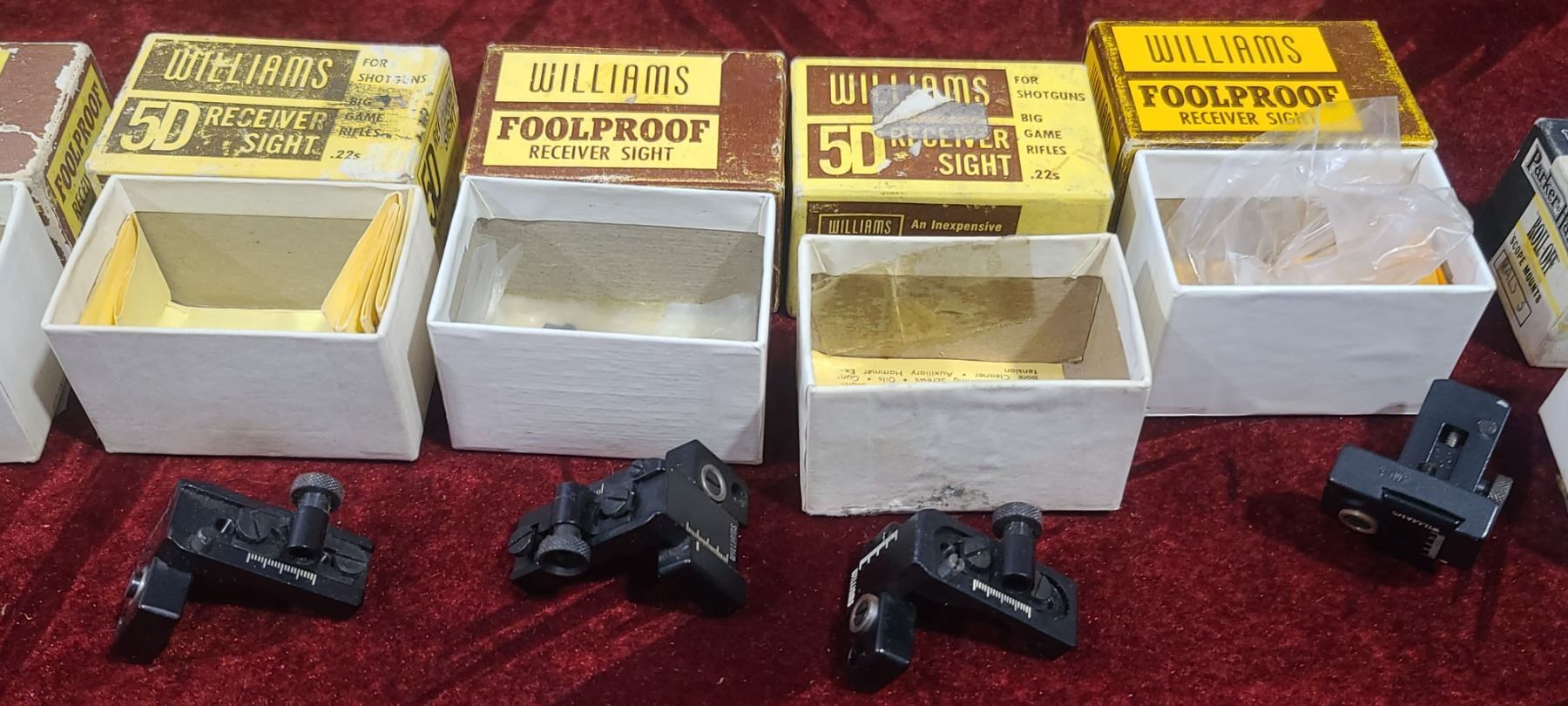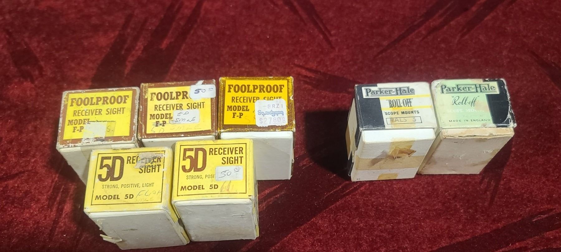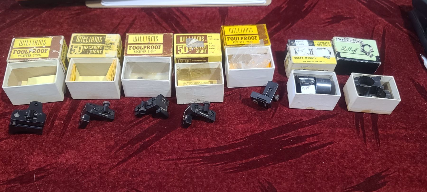 FIVE WILLIAMS FOOL PROOF RECIEVER SIGHTS AND TWO PARKER HALE RINGS