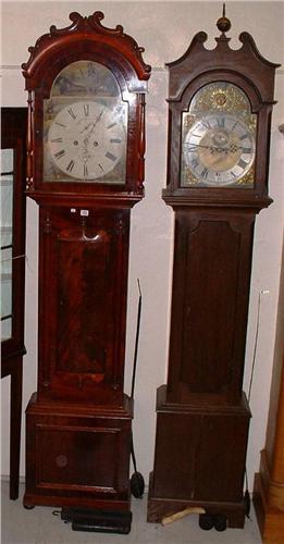 FLAME MAHOGANY GRANDFATHER CLOCK WITH PAINTED DIAL