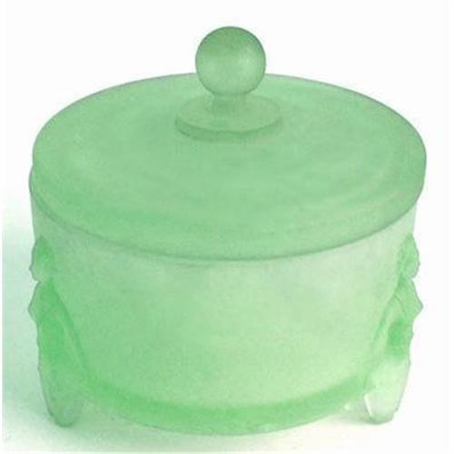 <tr><td>Title:FLAPPERS Green Satin Glass Art Deco Powder Jar</td></tr>