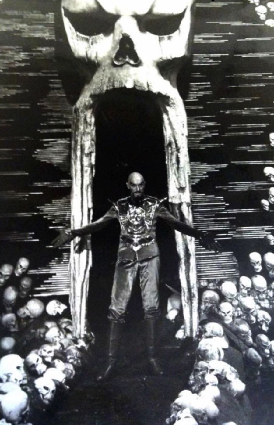 A production-used Klytus mask from Mike Hodges' sci-fi adventure Flash Gordon. This mask was used in a deleted scene, in which Emperor Ming (Max von Sydow) visited the home planet of General Klytus (Peter Wyngarde). Masks were applied to a number of plaster skulls which adorned the set.