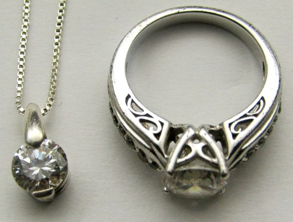 PENDANT W/ LARGE CLEAR CNTR STONE & RING SIZE 7. MODERN! TOTAL 5.4 DWT