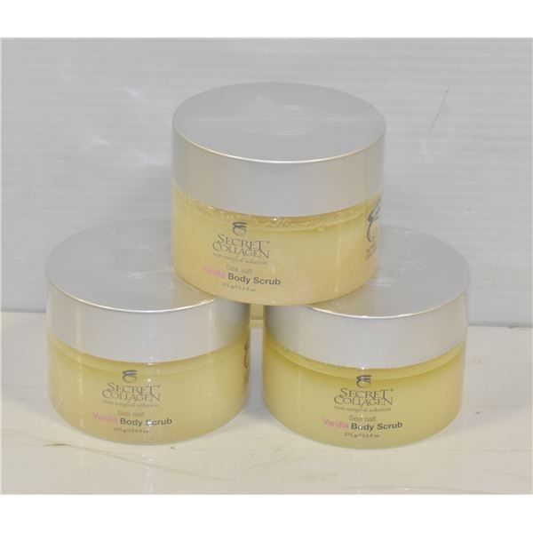 SECRET COLLAGEN SEA SALT VANILLA BODY SCRUB RETINOL AND COLLAGEN, ORGANIC, NO PARABEN, NO ANIMAL TESTING. MADE WITH NATURAL INGRDIENTS