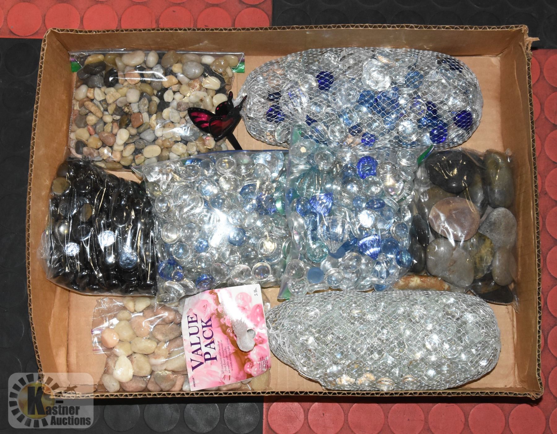 BEADS, GLASS DECOR AND DECORATIVE ROCKS