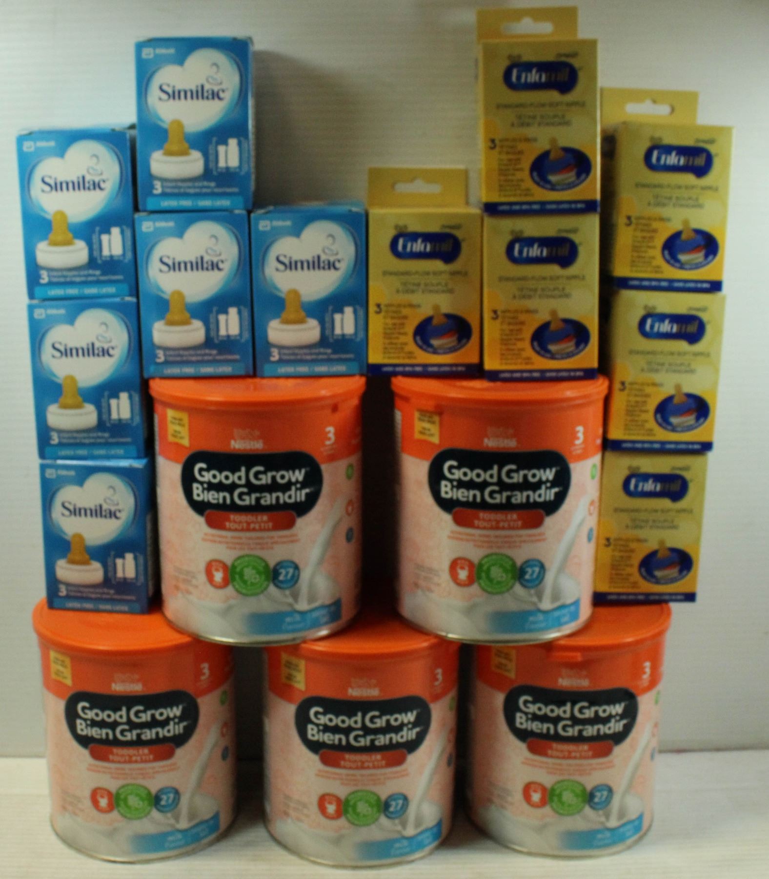 FLAT LOT OF ASSORTED BABY FORMULA & NIPPLES