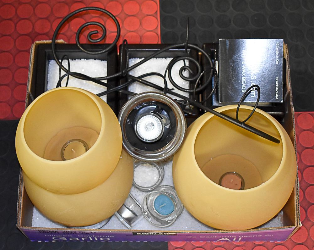 FLAT LOT OF ASSORTED CANDLES + OTHER DECOR