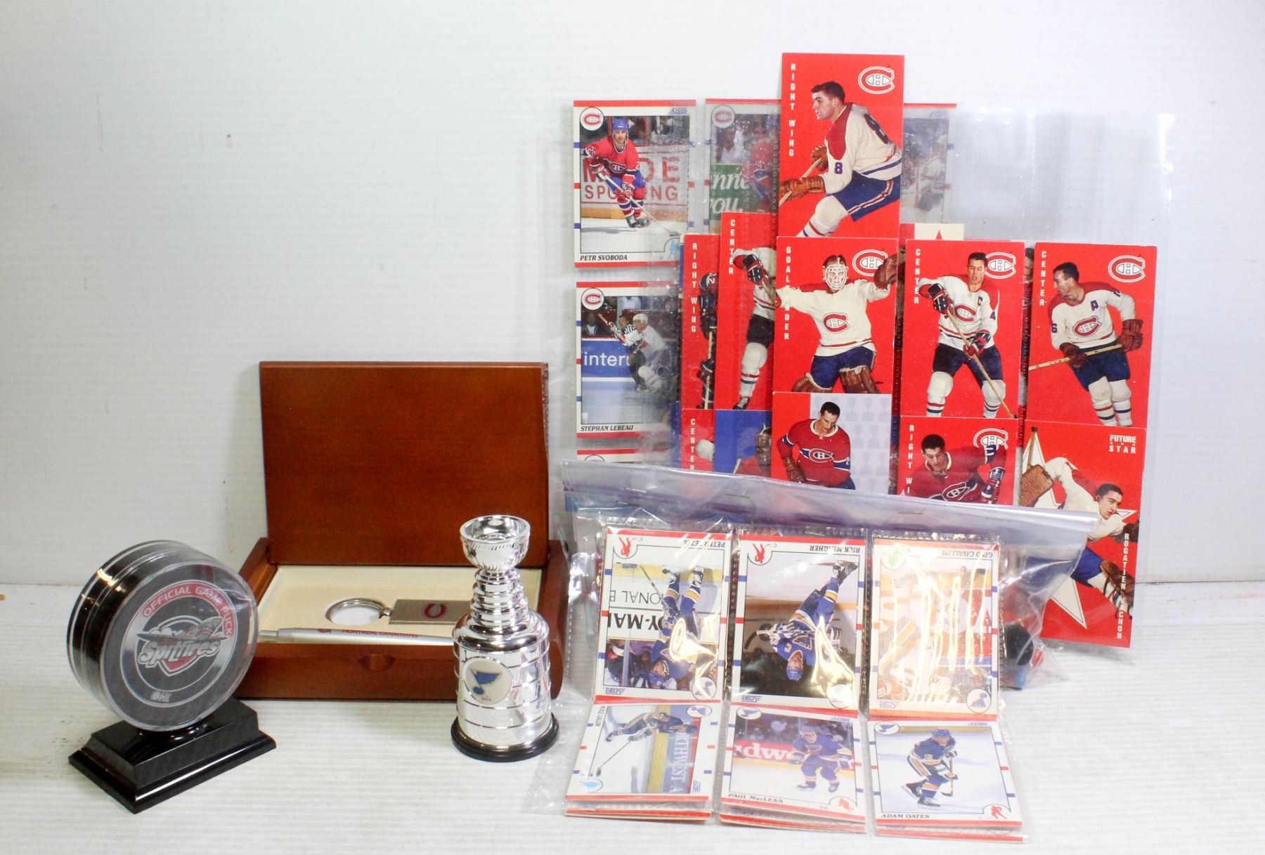 FLAT LOT OF ASSORTED HOCKEY CARDS + COLLECTIBLES