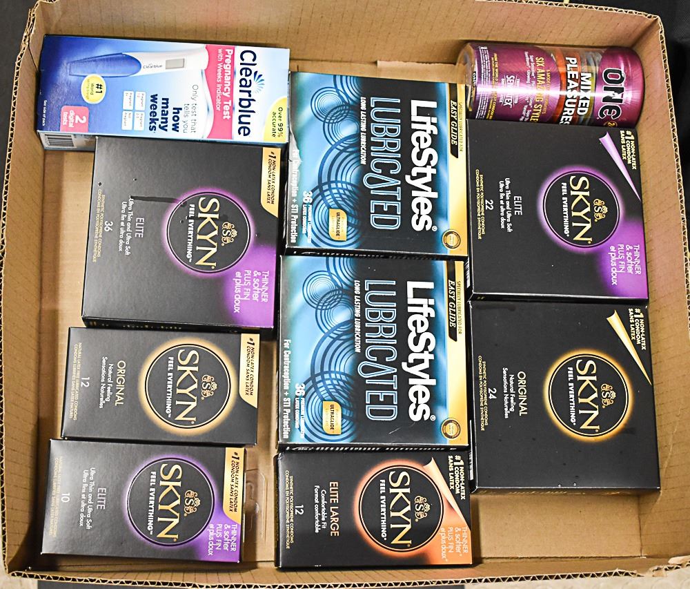 FLAT LOT OF BRAND NAME CONDOMS AND TESTS
