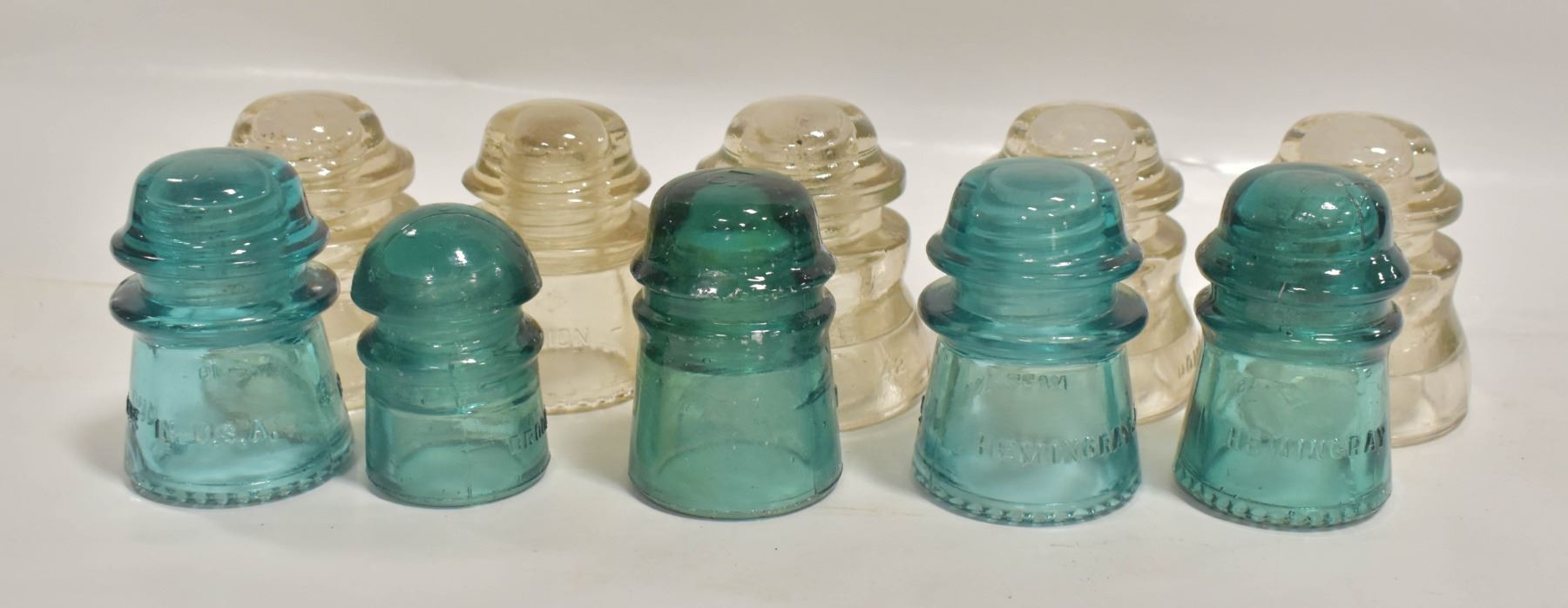 FLAT OF 10 ASSORTED VINTAGE GLASS INSULATORS
