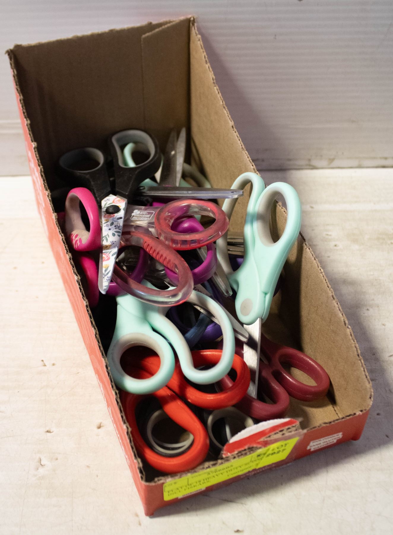FLAT OF 18 HEAVY DUTY SCISSORS INCL FISKARS,