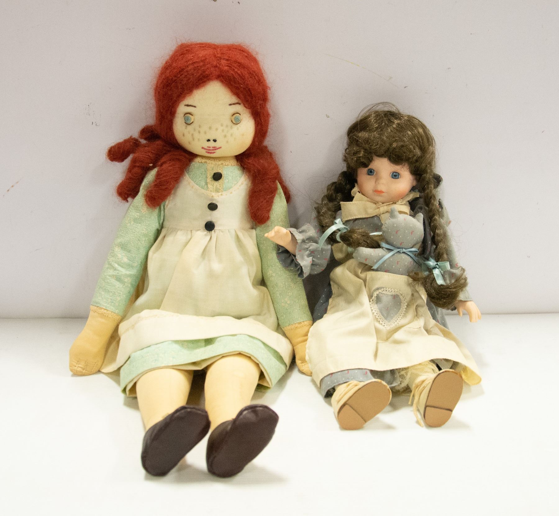 FLAT OF 2 COLLECTIBLE DOLLS, ONE PORCELAIN
